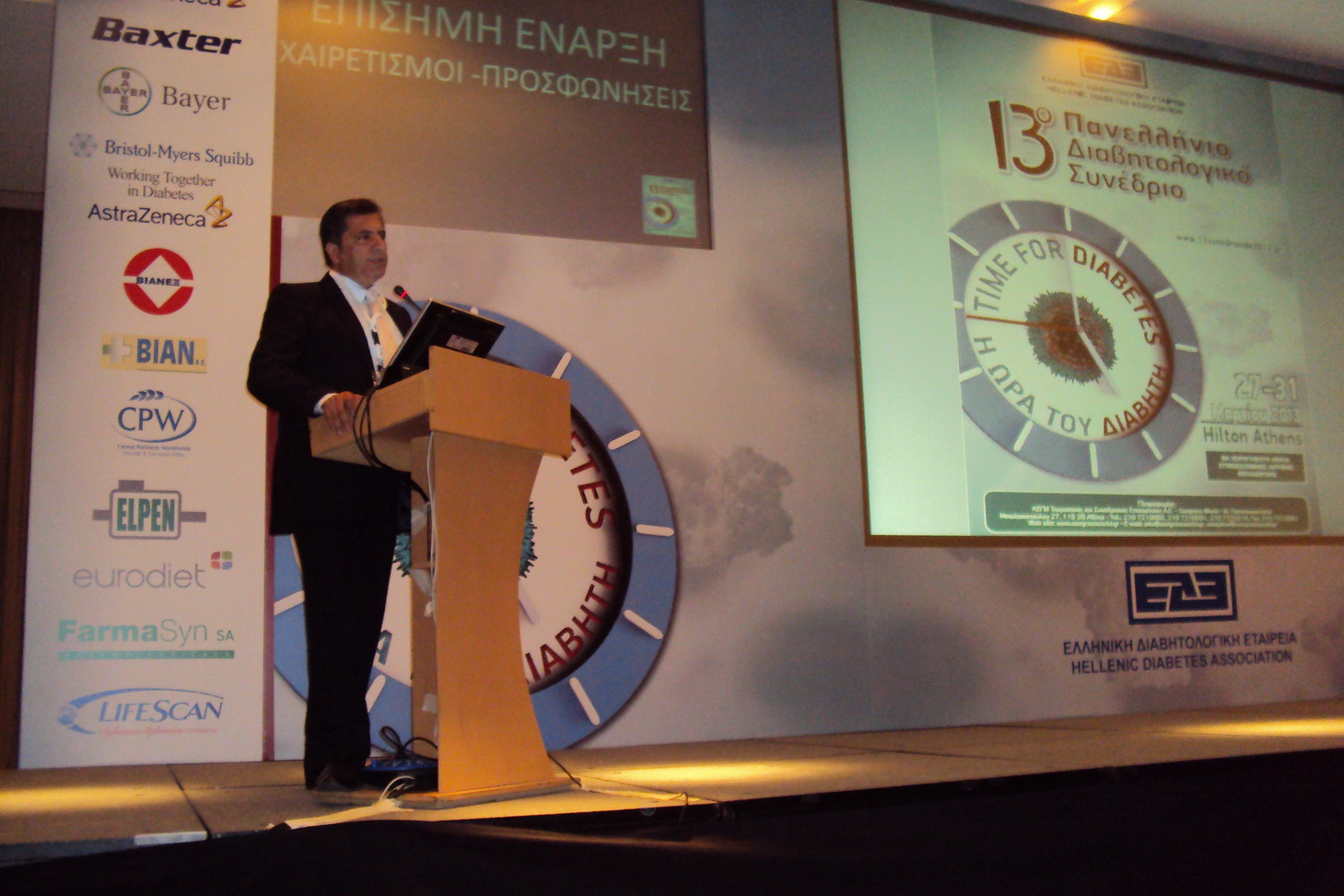Το Δέον της Πρόληψης μέσα από κατάλληλες δομές και πολιτικές υγείας τόνισε ο Πρόεδρος του Ιατρικού Συλλόγου Αθηνών κος Γιώργος Πατούλης, στα πλαίσια έναρξης του 13ου Πανελλήνιου Διαβητολογικού Συνεδρίου που ξεκίνησε χθες και συνεχίζεται με μεγάλη επιτυχία και πλούσια θεματολογία. Σε μια Ελλάδα που οι Σακχαροδιαβητικοί ανέρχονται στο 10% του πληθυσμού, ενώ υπάρχει επιπλέον ένα 4% που πάσχει αδιάγνωστο ο κος Πατούλης κατέδειξε την αναγκαιότητα προσυμπτωματικού ελέγχου, στη διαδικασία έγκαιρης διάγνωσης και θεραπείας της νόσου. Ο κος Πατούλης μίλησε για μια καθολική Εθνική Πολιτική Πρόληψης, ισότιμη για όλους τους κατοίκους αυτής χώρας, μπορούμε να μιλούμε για αποτελεσματική αντιμετώπισης της ΠΑΝΔΗΜΙΑΣ που λέγεται ΔΙΑΒΗΤΗΣ.Τόνισε ιδιαίτερα την αναγκαιότητα στις εκστρατείες ενημέρωσης και στους προσυμπτωματικούς ιατρικούς ελέγχους για την ανίχνευση του διαβήτη σε φαινομενικά μη νοσούντες πολίτες. Επίσης, ο Πρόεδρος του Ιατρικού Συλλόγου Αθηνών τόνισε την αναγκαιότητα αντιπαραβολής του TAXISμε την ΗΔΙΚΑ για τον προσδιορισμό ποσοστού συμμετοχής στα φάρμακα και στις εξετάσεις, μια και όπως είπε: “κρίνεται περισσότερο από αναγκαία πια, μία κοινή πλατφόρμα αναζήτησης των στοιχείων του ασφαλισμένου μέσα από το σύστημα φορολογικής ενημερότητας του TAXIS και το σύστημα ηλεκτρονικής διαχείρισης της ΗΔΙΚΑ ώστε να προσδιορίζεται η συμμετοχή του ασφαλισμένου από 0% έως 25% στο φάρμακο και στις εργαστηριακές εξετάσεις, βάσει εισοδήματος.” “Δύο είναι οι προτεραιότητες”, είπε ο κος Πατούλης, “Η πρώτη είναι μια Πολιτική Υγείας με άξονα την ποιότητα ζωής του αρρώστου, τη βέλτιστη λύση για τη ζωή του αρρώστου και την αντιμετώπιση του αρρώστου ως ανθρώπινου όντως και όχι ως λογιστικού αριθμού. Η δεύτερη είναι μια Πολιτική Υγείας με άξονα την πρόληψη για την αποφυγή της εμφάνισης του ΣΔ και πολύ περισσότερο των επιπλοκών του. Και οι δύο άξονες προτεραιοτήτων οριοθετούν ένα πλαίσιο δράσεων και ενεργειών, που στόχο έχει η Ιατρική του 2013 να πάει μπροστά προς όφελος του ασθενή πολίτη και κανενός άλλου. “