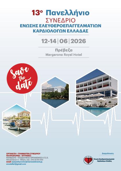 13o ΠΑΝΕΛΛΗΝΙΟ ΣΥΝΕΔΡΙΟ ΕΝΩΣΗΣ ΕΛΕΥΘΕΡΟΕΠΑΓΓΕΛΜΑΤΙΩΝ ΚΑΡΔΙΟΛΟΓΩΝ ΕΛΛΑΔΟΣ – ΠΡΕΒΕΖΑ 12-14/6/2026 – MARGARONA ROYAL HOTEL
