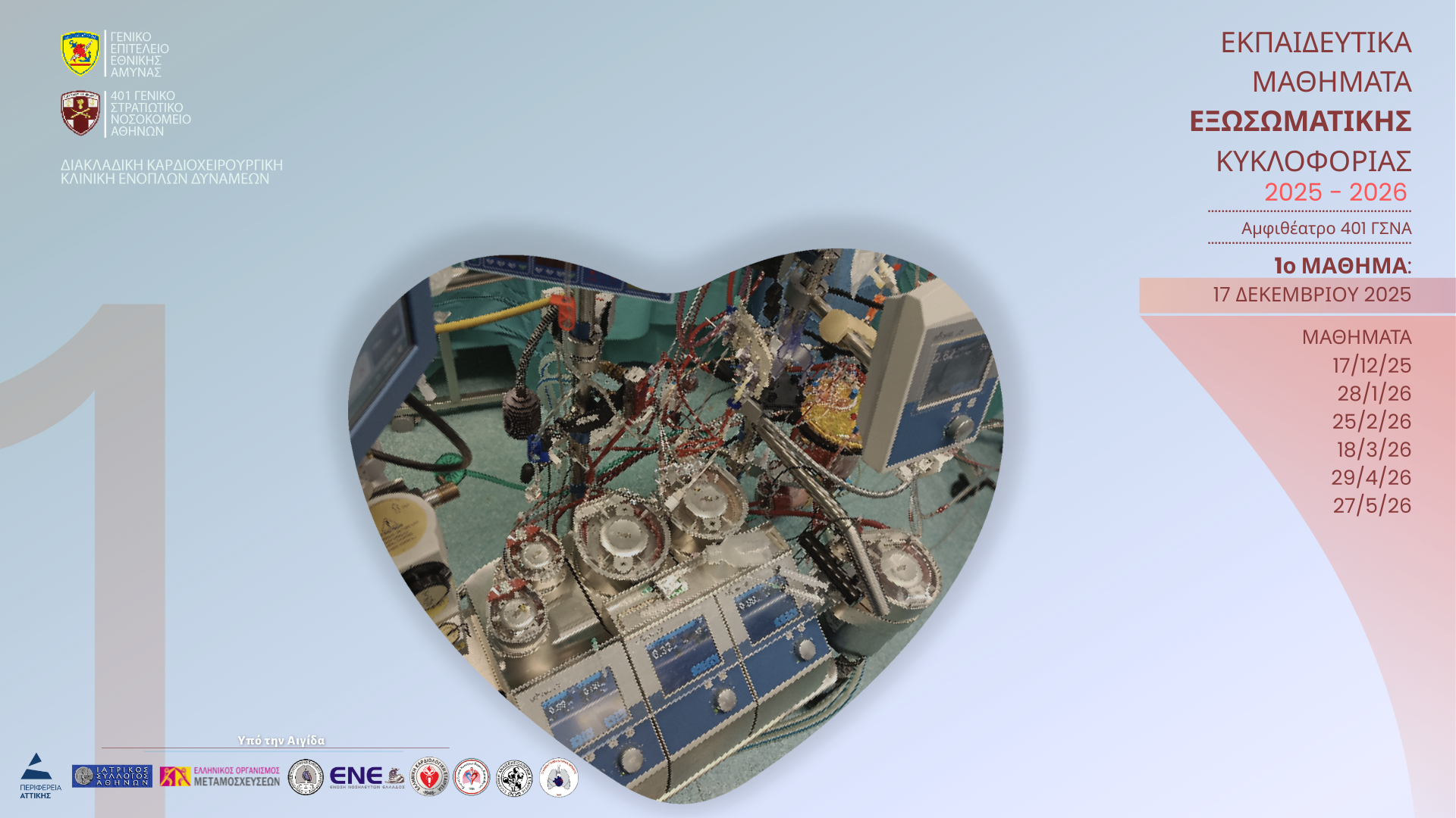 1o Εκπαιδευτικό Μάθημα Εξωσωματικής Κυκλοφορίας 2025-2026 | Τετάρτη 17 Δεκεμβρίου 2025, Αμφιθέατρο του 401 ΓΣΝΑ