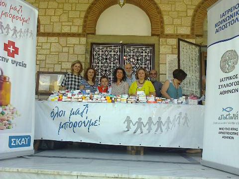 Ολοκληρώθηκε με επιτυχία και σήμερα η δράση του Ιατρικού Συλλόγου Αθηνών και του Φιλανθρωπικού οργανισμού ΑΠΟΣΤΟΛΗ της Ιεράς Αρχιεπισκοπής Αθηνών «Όλοι μαζί μπορούμε και στην Υγεία» του ραδιοτηλεοπτικού Σταθμού ΣΚΑΙ, όπου στον Ιερό Ναό Ευαγγελισμού της Θεοτόκου στη Νέα Ερυθραία συγκεντρώθηκαν 20 μεγάλοι σάκοι με φαρμακευτικό και υγειονομικό υλικό, ορθοπαιδικά βοηθήματα και 1 φιάλη οξυγόνου. Τη διαδικασία για τη συλλογή φαρμάκων επιμελήθηκαν οι εθελοντές του Ιατρείου Κοινωνικής Αποστολής “Ευχαριστούμε από βάθους καρδίας όλους τους συμπολίτες μας που ανταποκρίθηκαν σε αυτό το κάλεσμα και μεμοναδικό ανθρωπισμό προσέφεραν τα φάρμακα που διέθετανή αγόρασαν. Ευχαριστούμε τους εθελοντές μας που πάλι έδωσαν παράδειγμα ανθρωπιάς για να απαλύνουν τον ανθρώπινο πόνο. Συνεχίζουμε ενωμένοι την προσπάθεια μας όσο η πολιτεία αδυνατεί να καλύψει αυτούς τους ανθρώπους”, ανέφερε ο Πρόεδρος του ΙΣΑ κ. Πατούλης. « Είναι συγκινητική η ανταπόκριση του κόσμου και αυτό μας δίνει δύναμη και κουράγιο να συνεχίσουμε τον αγώνα μας με γνώμονα την ανακούφιση των φτωχών και άρρωστων συνανθρώπων μας. Επιτακτική ανάγκη προβάλλει να στηρίξουμε τους ανθρώπους που μας έχουν ανάγκη, που υποφέρουν και αντιμετωπίζουν πολλά προβλήματα στην υγεία τους», δήλωσε ο Γεν Διευθυντής της ΑΠΟΣΤΟΛΗΣ κος Δήμτσας Το Ιατρείο Κοινωνικής Αποστολής λειτουργεί στα γραφεία του Ιατρικού Συλλόγου Αθηνών, στην οδό Σεβαστουπόλεως 113, Δευτέρα-Παρασκευή, από τις 9.00 το πρωί έως τις 3. 00 το μεσημέρι. Δέχεται ασθενείς, οι οποίοι είναι ανασφάλιστοι. Εκεί, μπορούν να εξετάζονται και να παραλαμβάνουν τα φάρμακά τους. Προκειμένου να εξετασθούν, θα πρέπει να προσκομίζουν: 1)ταυτότητα ή διαβατήριο ή δίπλωμα οδήγησης, ώστε να αποδεικνύεται η ταυτότητά τους 2)Βιβλιάριο Υγείας το οποίο έχει λήξει 3) Κάρτα ανεργίας, η οποία επίσης έχει λήξει.