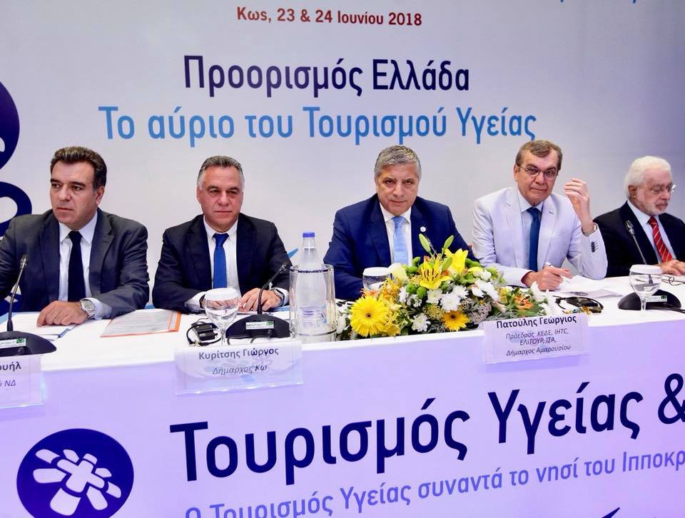 Γ. Πατούλης: «Ενώνουμε τις δυνάμεις μας, για να γίνει η Ελλάδα, ως αρχαία Μέκκα της Ιατρικής, η σύγχρονη νησίδα ταξιδιωτικής υγείας και να ανοίξει και πάλι το παράθυρο ιατρικής γνώσης στον κόσμο» Τα ισχυρά ανταγωνιστικά πλεονεκτήματα της Ελλάδας που μπορεί να παίξει πρωταγωνιστικό ρόλο, στον παγκόσμιο χάρτη του τουρισμού υγείας και ευεξίας, παρουσιάστηκαν στο πλαίσιο του 2ου Διεθνούς Συνεδρίου, για τον Τουρισμό Υγείας, στην Ελλάδα που πραγματοποιείται με τη συμμετοχή διακεκριμένων ομιλητών και εμπειρογνωμόνων διεθνούς κύρους, στην Κω (23-24 Ιουνίου 2018). Το συνέδριο που έχει θέμα «Τουρισμός Υγείας και Ανάπτυξη», διοργανώνεται από την ΚΕΔΕ, το Δήμο Κω και το Διεθνές Κέντρου Τουρισμού Υγείας, υπό την αιγίδα του Υπουργείου Τουρισμού, του Πανελλήνιου Ιατρικού Συλλόγου, του Ιατρικού Συλλόγου Αθηνών και του Παγκόσμιου Ινστιτούτου Ελλήνων Ιατρών. Συμμετείχαν διακεκριμένοι επιστήμονες από όλο τον κόσμο, εμπειρογνώμονες, κυβερνητικοί παράγοντες της Ελλάδας και άλλων χωρών, εκπρόσωποι της αυτοδιοίκησης και του επιχειρηματικού και τουριστικού κλάδου της χώρας μας κ.α.