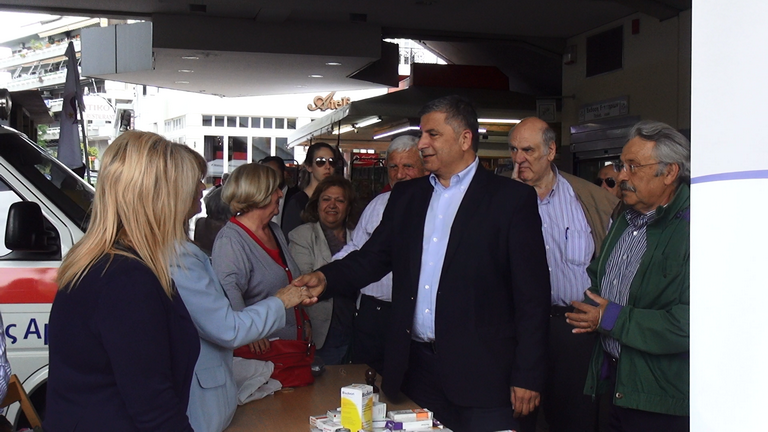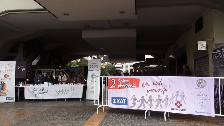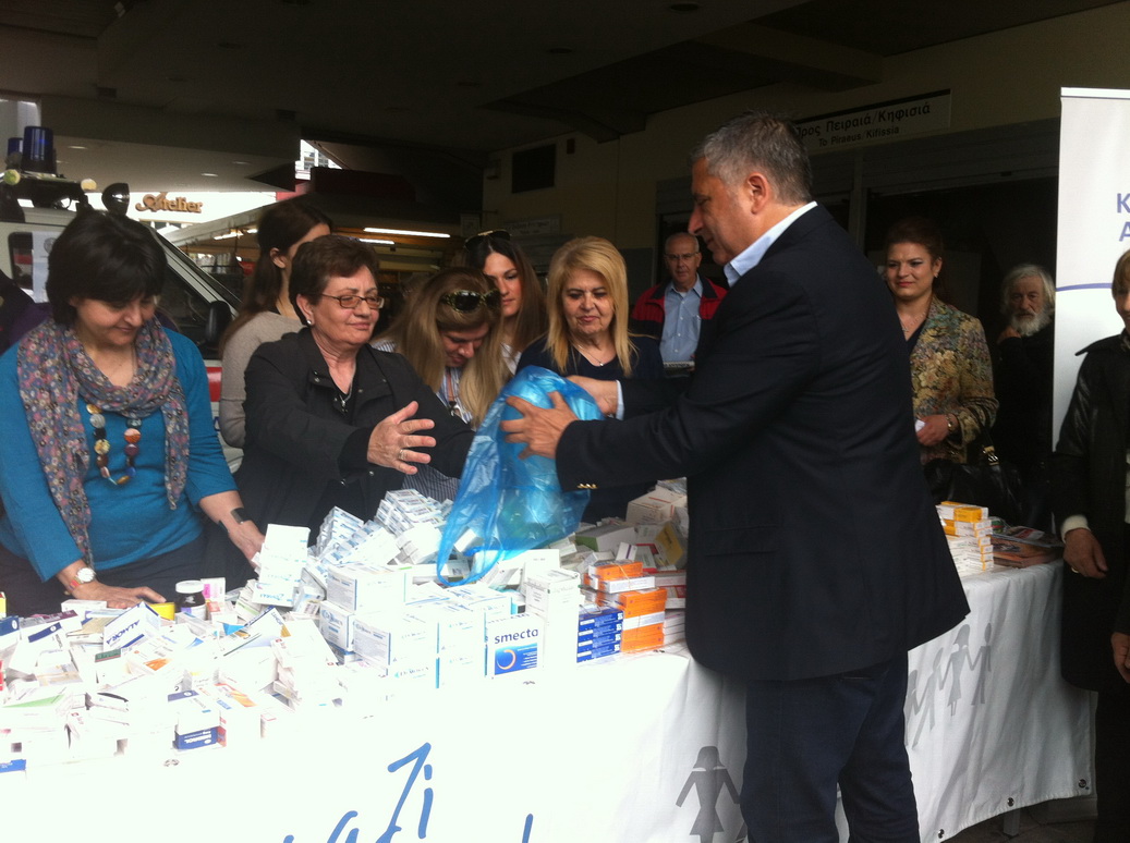 Οι εθελοντές του Ιατρείου Κοινωνικής Αποστολής στη συλλογή φαρμακων 2 χρόνια όλοι μαζί μπορούμε και στην υγεία