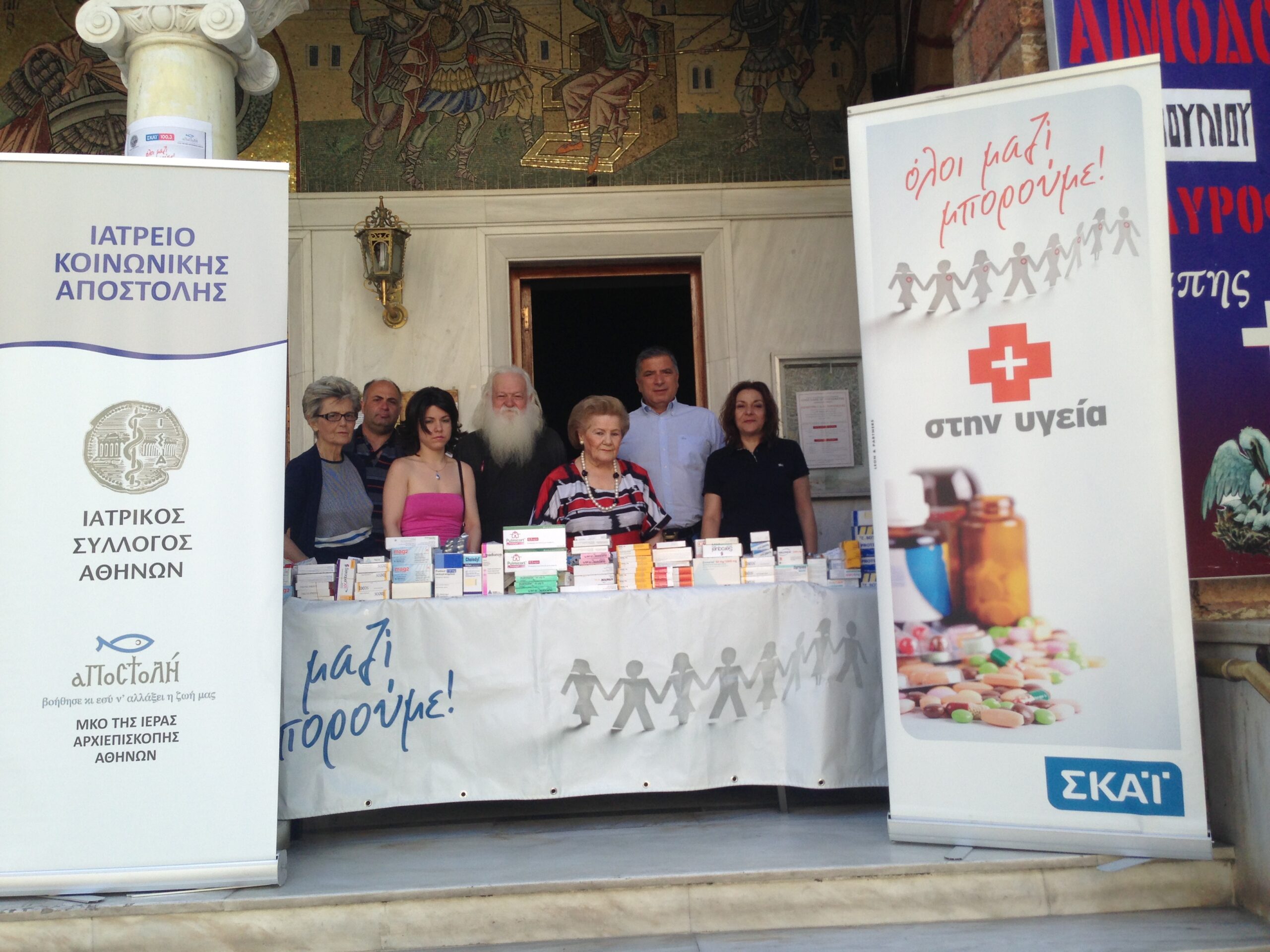 Ολοκληρώθηκε με τεράστια επιτυχία και σήμερα η δράση του Ιατρικού Συλλόγου Αθηνών και του Φιλανθρωπικού οργανισμού ΑΠΟΣΤΟΛΗ της Ιεράς Αρχιεπισκοπής Αθηνών «Όλοι μαζί μπορούμε και στην Υγεία» του ραδιοτηλεοπτικού Σταθμού ΣΚΑΙ, όπου συγκεντρώθηκανστον Ιερό Ναό της Αγίου Δημητρίου (Πανόρμου) στους Αμπελοκήπους  συγκεντρώθηκαν  35  μεγάλοι  σάκοι με φαρμακευτικό και υγειονομικό υλικό μεταξύ των οποίων και ενέσεις ινσουλίνης καθώς και ειδικά υποδήματα για διαβητικούς.