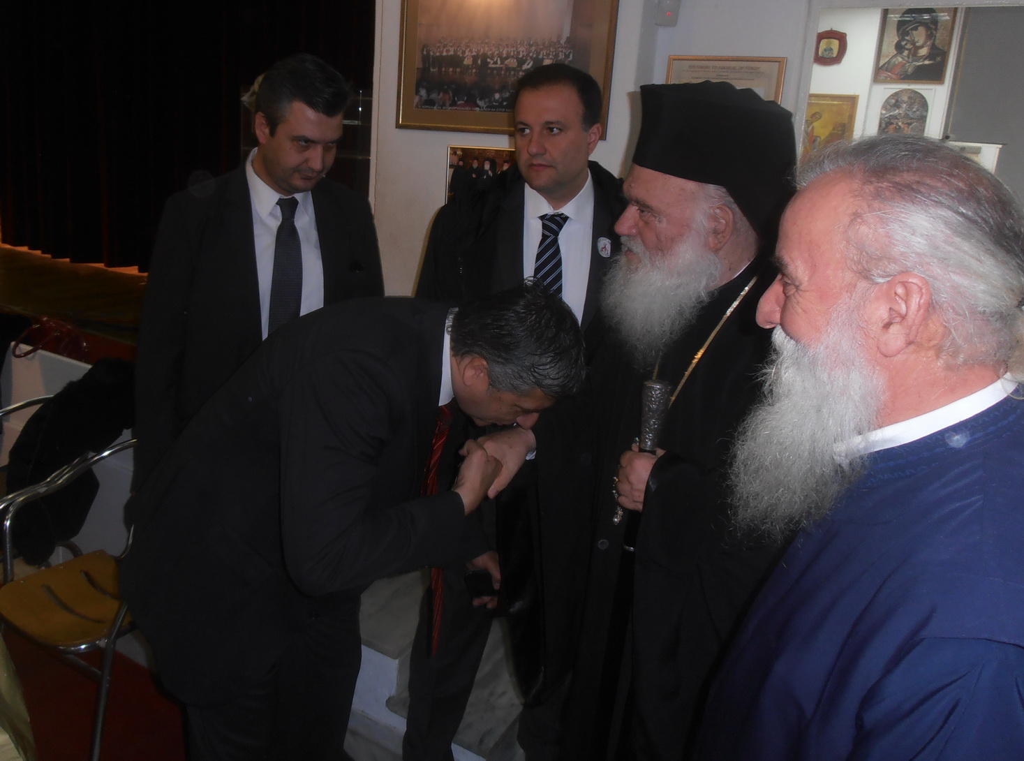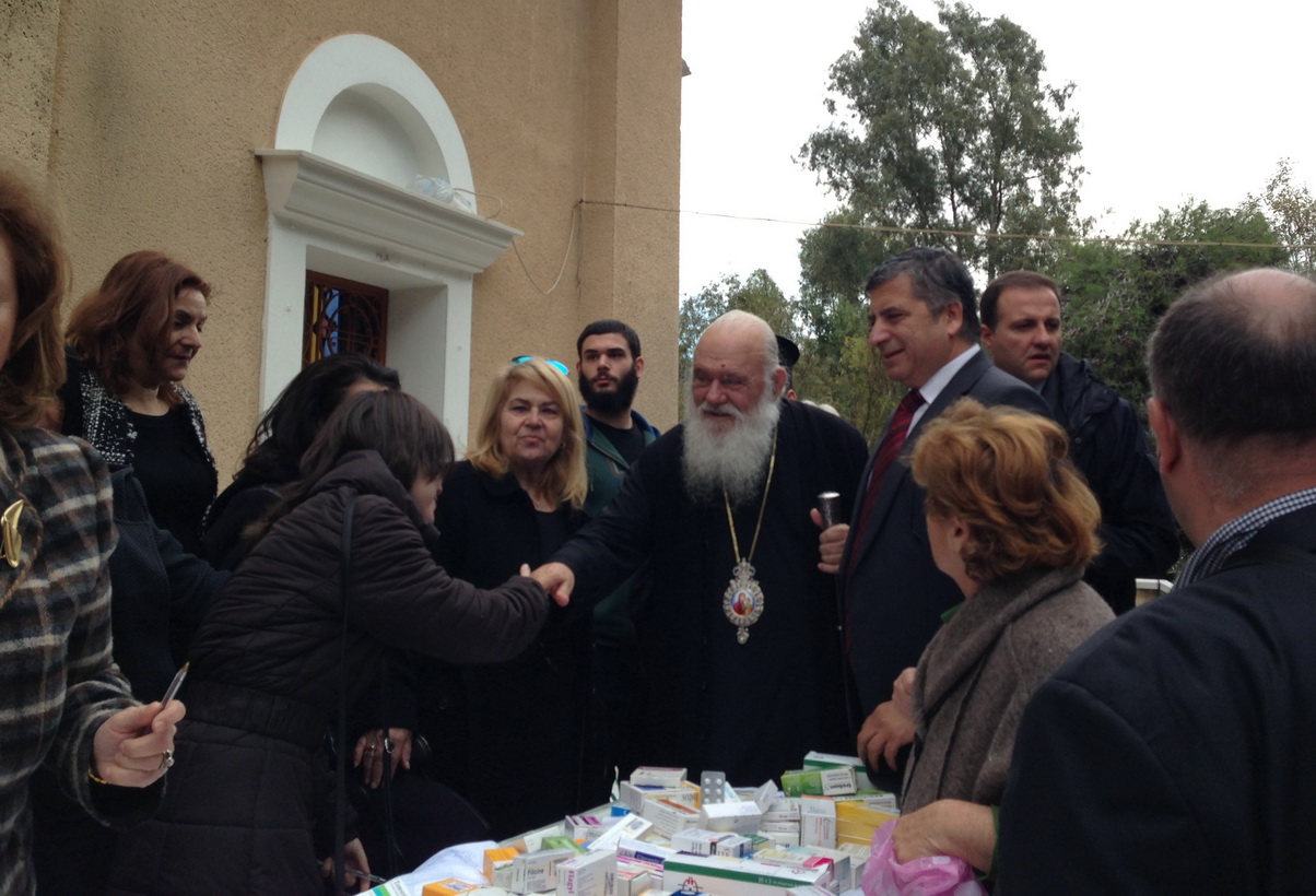 Ο Μακαριώτατος Αρχιεπίσκοπος Αθηνών και Πάσης Ελλάδος κκ. Ιερωνυμος με , τον Πρωτοσύγκελο Π.Μάξιμο, τον Πρόεδρο του ΙΣΑ Γ.Πατούλη, τη φαρμακοποιό του Ιατρείου Α.Παππα και τους εθελοντές του Ιατρείου.