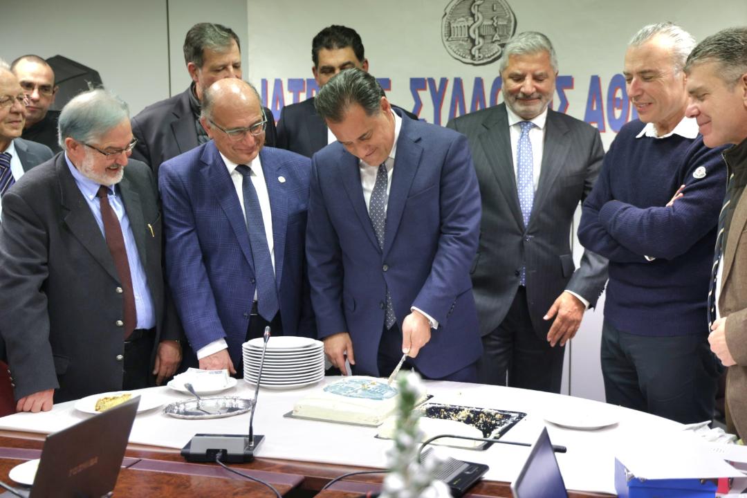 Παρουσία του Υπουργού Υγείας κ. Άδωνι Γεωργιάδη έγινε σήμερα, η κοπή της καθιερωμένης Πρωτοχρονιάτικης πίτας του ΙΣΑ, στα γραφεία του Συλλόγου.