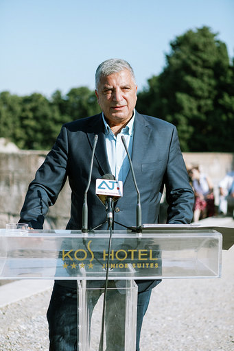 «Επιδιώκουμε με σταθερά βήματα να γίνει η Ορκωμοσία εδώ στο Ασκληπιείο της Κω ένα παγκόσμιο ετήσιο γεγονός, να διευρυνθεί ο κύκλος των αριστούχων ιατρών που σήμερα ορκίζονται στον όρκο του Ιπποκράτη με τους αριστούχους των μεγαλύτερων ξένων πανεπιστημίων» τόνισε και υπογράμμισε πως η αυτοδιοίκηση σε συνεργασία με τον επιστημονικό κόσμο από τη γενέτειρα του Ιπποκράτη στέλνουν το μήνυμα ότι η Ελλάδα με εφόδιο την πλούσια κληρονομιά της προχωράει μπροστά και οδηγείται στην ανάπτυξη.