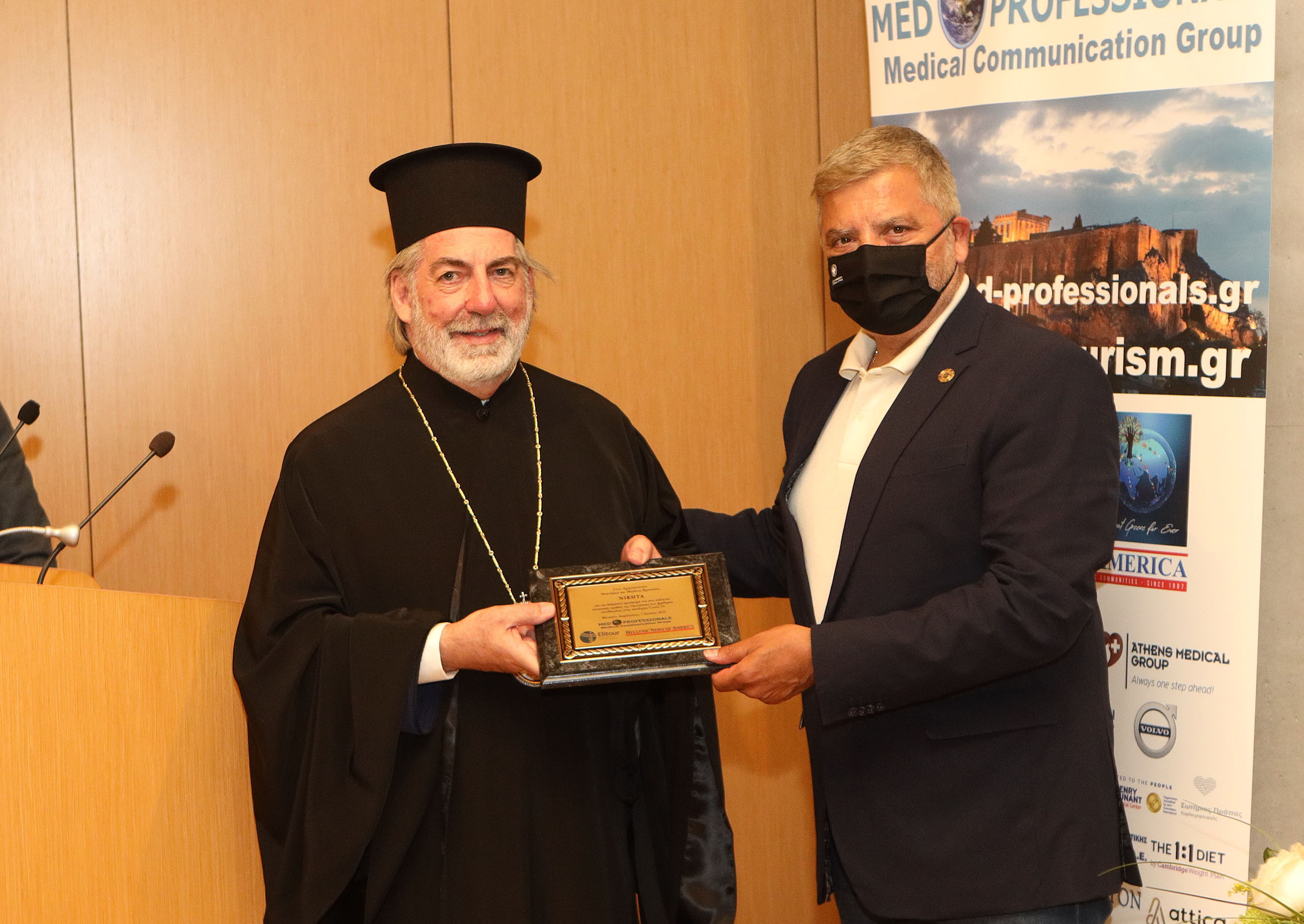 Απονομή βραβείου στον Πρόεδρο του ΙΣΑ και Περιφερειάρχη Αττικής Γ. Πατούλη για τη δράση και τη συνδρομή του στην αντιμετώπιση της πανδημίας από τον όμιλο Med-Professionals, στο πλαίσιο του 7ου Συμπόσιου Ιατρικού Τουρισμού