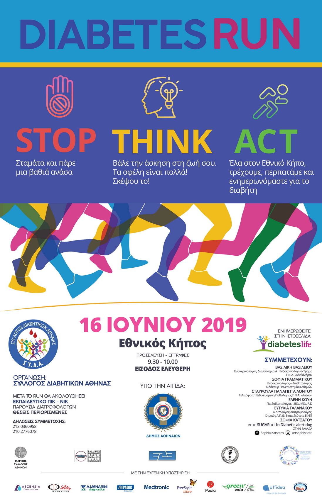 Με την ευγενική υποστήριξη των εταιρειών Medtronic, Abbott, Φαρμασέρβ Lilly, Menarini Diagnostics, Ascensia, Natura Pharm, Ζωγράφος, Βίκος, Green Cola, Affidea.