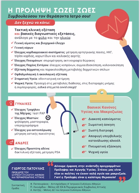 Γ. Πατούλης: «Δίνουμε προτεραιότητα στην υγεία 365 μέρες το χρόνο. Στέλνουμε το μήνυμα της πρόληψης και συμβάλλουμε με αξιόλογες δράσεις και πρωτοβουλίες στην προστασία της Υγείας των πολιτών. Στηρίζουμε το αξιόμαχο επιστημονικό προσωπικό γιατί υγεία χωρίς γιατρούς δεν γίνεται! » Με αφορμή την σημερινή Παγκόσμια Ημέρα Υγείας, βρίσκονται σε εξέλιξη σειρά δράσεων και πρωτοβουλιών στις οποίες συμμετέχει ο ΙΣΑ, με στόχο την προστασία της υγείας, την ενίσχυση της πρόληψης και την ενθάρρυνση των πολιτών να ακολουθούν κανόνες υγείας και μακροζωίας. Ειδικότερα, με πρωτοβουλία του Προέδρου του ΙΣΑ και Περιφερειάρχη Γ. Πατούλη και σε συνεργασία της Περιφέρειας Αττικής, του ΙΣΑ, του ΕΔΔΥΠΠΥ, των ΚΕΠ Υγείας, του Μητροπολιτικού Πάρκου «Αντώνης Τρίτσης», Πανεπιστημιακών Ιδρυμάτων και Φορέων, βρίσκονται σε εξέλιξη ενημερωτικές δράσεις και καμπάνιες. Οι εκδηλώσεις θα κορυφωθούν αύριο Παρασκευή 8 Απριλίου με την υλοποίηση της δράσης «Προτεραιότητα στην Υγεία» που θα πραγματοποιηθεί από τις 10 το πρωί μέχρι τις 7 το βράδυ στο Μητροπολιτικό Πάρκο Περιβαλλοντικών και Εκπαιδευτικών Δραστηριοτήτων και Ανάπτυξης Κοινωνικής Οικονομίας «Αντώνης Τρίτσης». Επιπλέον πραγματοποιείται ενημερωτική καμπάνια σε 30 σταθμούς σταθερών μέσων τροχιάς στην Αττική με διανομή 50.000 φυλλαδίων με σλόγκαν: «Να θυμηθώ να εξεταστώ!». Η δράση ολοκληρώνεται στις 11 Απριλίου. (Επισυνάπτεται το σχετικό ενημερωτικό υλικό). Με αφορμή την Παγκόσμια Ημέρα Υγείας, ο Πρόεδρος του ΙΣΑ και Περιφερειάρχης Αττικής Γ. Πατούλης δήλωσε: «Δίνουμε προτεραιότητα στην υγεία 365 μέρες το χρόνο. Με συμμάχους μας το υγειονομικό και στελεχιακό δυναμικό του ΙΣΑ, της Περιφέρειας Αττικής, του ΕΔΔΥΠΠΥ και των ΚΕΠ Υγείας, ισχυροποιούμε την πρόληψη και συμβάλλουμε στην προστασία της Υγείας των πολιτών. Όλοι μαζί ενωμένοι και δυνατοί, διεκδικούμε υψηλού επιπέδου υπηρεσίες υγείας, για τους πολίτες. Από την πρώτη στιγμή της πανδημίας αναπτύξαμε ένα οργανωμένο σχέδιο δράσης και με στοχευμένες στρατηγικές παρεμβάσεις και έχουμε συνδράμει σημαντικά στην υγειονομική θωράκιση της Αττικής. Η συνέχιση της πανδημίας καταδεικνύει ότι είναι αναγκαίο στις δύσκολες αυτές στιγμές, αυτοδιοίκηση, υγειονομικό προσωπικό, κοινωνία και πολιτεία να είναι ενωμένοι απέναντι στον κοινό εχθρό. Πρωταγωνιστής σε αυτή τη μάχη είναι το αξιόμαχο υγειονομικό προσωπικό μας που με αυταπάρνηση στάθηκε δίπλα στον πολίτη και στον ασθενή, προσφέροντας πολύτιμες υπηρεσίες. Η Περιφέρεια Αττικής κατά τη διάρκεια της πανδημίας, για την αντιμετώπιση των συνεπειών, έχει διαθέσει πάνω από 500 εκατομμύρια ευρώ. Μεταξύ άλλων διατέθηκαν 100 εκατ. από το ΠΕΠ Αττικής 2014-2020, για την πρόσληψη επικουρικού προσωπικού, γιατρούς και νοσηλευτές, σε 73 φορείς Υγείας της Αττικής, για την αντιμετώπιση της πανδημίας, δόθηκαν μέσω ΠΕΠ 64.000.000 ευρώ για αγορά ιατρικού εξοπλισμού που διατέθηκε στα Νοσοκομεία της Αττικής και τις Υγειονομικές Περιφέρειες. Επίσης όλο αυτό το διάστημα το Κέντρο Επιχειρήσεων του ΙΣΑ και της Περιφέρειας διενεργεί σειρά δράσεων, με τη διεξαγωγή rapid test, ενώ η τηλεφωνική γραμμή 1110 παρέχει δωρεάν πληροφορίες και υποστήριξη στους πολίτες. Θέλουμε να δημιουργήσουμε μια Περιφέρεια πρότυπο σε θέματα πρόληψης. Για το λόγο αυτό υλοποιείται στο σύνολο των Περιφερειακών Ενοτήτων της Αττικής με τη στενή συνεργασία του Ελληνικού Δικτύου Υγιών Πό