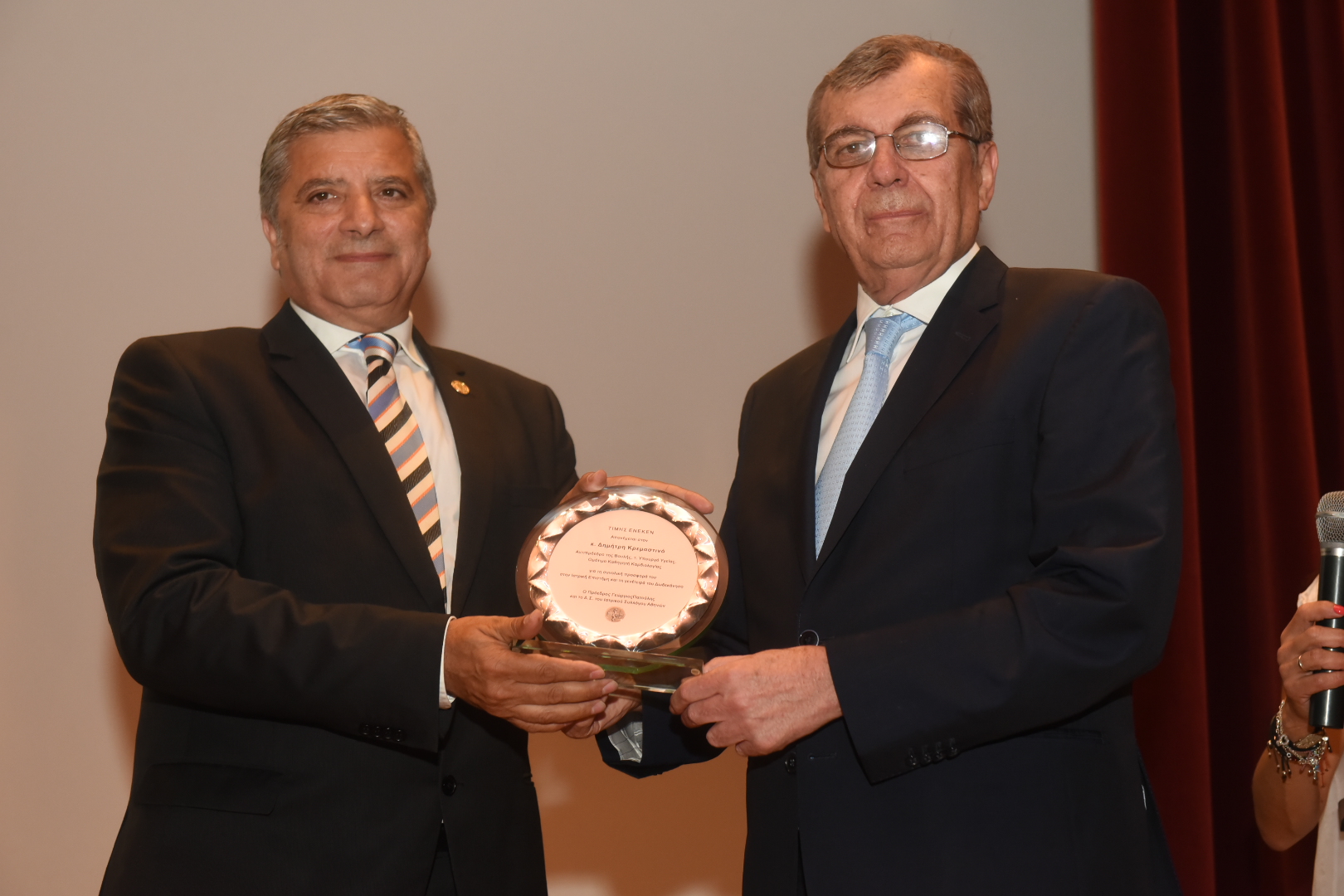 Ακολούθησε η βράβευση του κ. Δημήτρη Κρεμαστινού, Αντιπροέδρου της Βουλής, πρώην υπουργού Υγείας και ομότιμου Καθηγητή Καρδιολογίας, του κ. Κωνσταντίνου Κωνσταντινίδη, Καθηγητή Χειρουργικής Ohio State University των ΗΠΑ, – του οποίου την τιμητική πλακέτα έλαβε ο γιος του Κωνσταντίνος Κωνσταντινίδης λόγω ανειλημμένων υποχρεώσεων- .