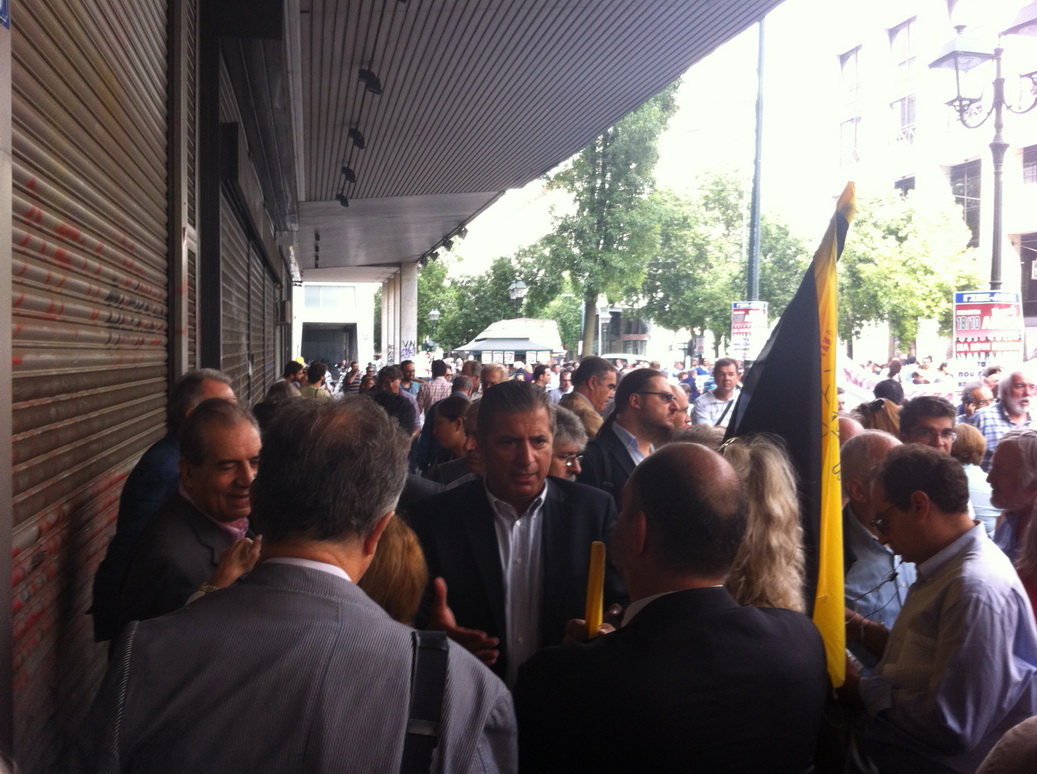 Όλοι μαζί στη συγκέντρωση διαμαρτυρίας έξω από το Υπουργείο Οικονομικών