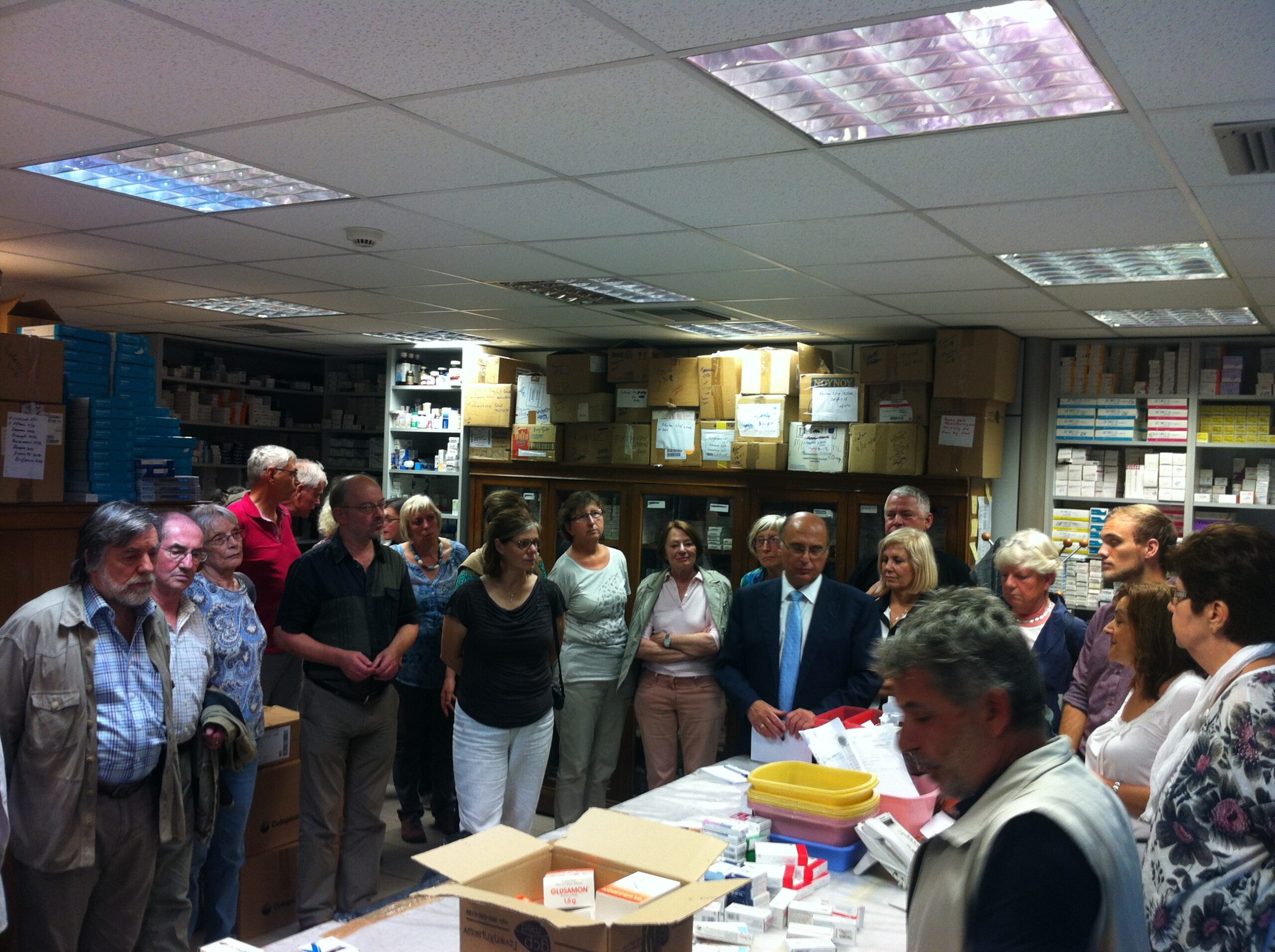 Ο Ταμίας του ΙΣΑ κ. Πατσουράκος ενημέρωσε επίσης σχετικά με το προσφυγικό ζήτημα, ότι ο Πρόεδρος του Ι.Σ.Α. Γ. Πατούλης έχει αναλάβει και μέσω της τοπικής αυτοδιοίκησης πρωτοβουλίες ανθρωπιάς και αλληλεγγύης για τους πρόσφυγες που προσέρχονται στη χώρα μας. Η προσπάθεια αυτή θα συνεχιστεί για το σύνολο των προσφύγων και για όσο διάστημα συνεχιστούν οι μεταναστευτικές ροές. Ως Ιατρικός Σύλλογος Αθηνών η πάγια θέση μας είναι ότι πρέπει να σταματήσει αυτός ο Πόλεμος που μας έκανε μάρτυρες απάνθρωπων εικόνων, έως τότε ο Ιατρικός Κόσμος θα συνδράμει καταλυτικά για την αξιοπρεπή διαβίωση αυτών των αβοήθητων ανθρώπων. Οι επισκέπτες γνώρισαν επίσης τις υπεύθυνες του Ιατρείου, την ιατρό κ. Μελιάδου, την φαρμακοποιό κ. Παπαπροκοπίου και την ψυχολόγο κ. Αυλωνίτου και θαύμασαν το έργο του Ιατρείου Κοινωνικής Αποστολής επισημαίνοντας ότι εύχονται η Υγεία να φύγει από το Μνημόνιο που έφερε την Ελλάδα σε αυτήν την κρίση. Τέλος υποσχέθηκαν ότι θα συμβάλλουν στο ανθρωπιστικό έργο του Ιατρείου Κοινωνικής Αποστολής αποστέλλοντας φάρμακα για τους ασθενείς.