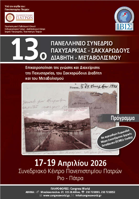 13ο ΠΑΝΕΛΛΗΝΙΟ ΣΥΝΕΔΡΙΟ ΠΑΧΥΣΑΡΚΙΑΣ, ΣΑΚΧΑΡΩΔΟΥΣ ΔΙΑΒΗΤΗ, ΜΕΤΑΒΟΛΙΣΜΟΥ