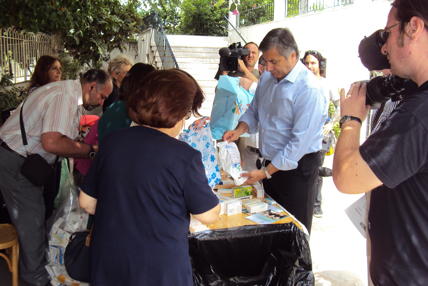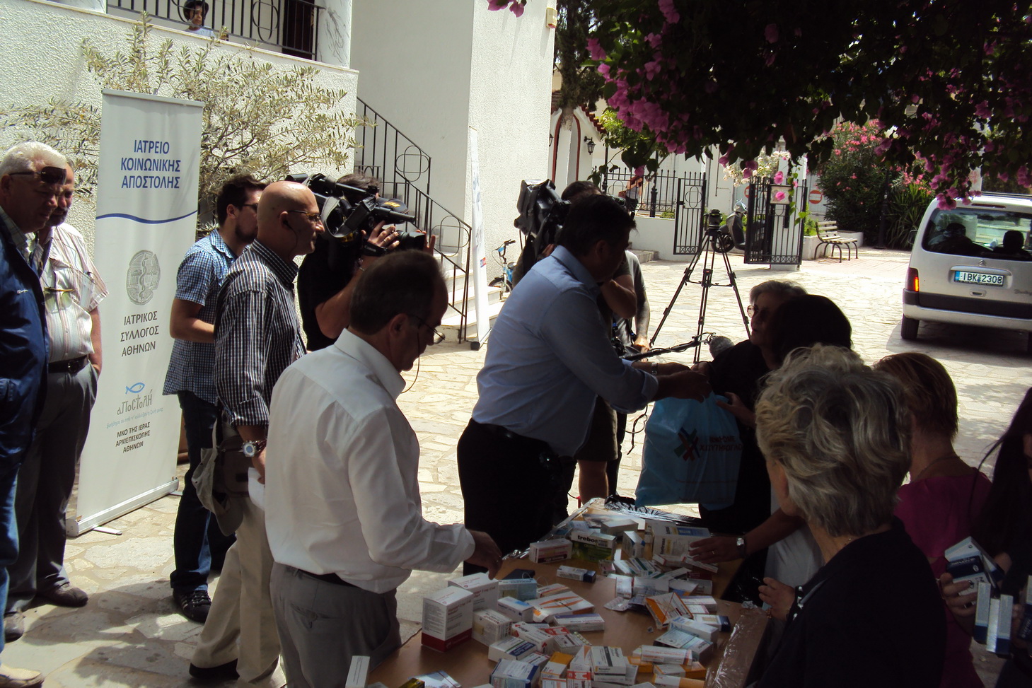 Με επιτυχία ολοκληρώθηκε και σήμερα η δράση του Ιατρείου Κοινωνικής Αποστολής και του ΣΚΑΙ «Όλοι μαζί μπορούμε και στην Υγεία» στον Ιερό Ναό Παμμεγίστων Ταξιαρχών στο Μοσχάτο. Η συμβολή του Ιατρικού Συλλόγου Αθηνών, της ΑΠΟΣΤΟΛΗΣ της Ιεράς Αρχιεπισκοπής Αθηνών και του ΣΚΑΙ παραμένει πολύ σημαντική στη συλλογή φαρμάκων που 12 μήνες στηρίζουν αδιαλείπτως την ιατροφαρμακευτική περίθαλψη των ανασφάλιστων ασθενών. 20 σάκοι με φάρμακα συγκεντρώθηκαν από δεκάδες συμπολίτες μας που πρόστρεξαν στο Ναό για να προσφέρουν φάρμακα και υγειονομικό υλικό για τους ανασφάλιστους ασθενείς του Ιατρείου Κοινωνικής Αποστολής. Το μήνυμα αλληλεγγύης και ανθρωπιάς που ξεκινήσαμε με τους εθελοντές μας, επεκτείνεται σε όλη την Ελλάδα. Στη συλλογή φαρμάκων παρευρέθησαν ο Πρόεδρος του Ιατρικού Συλλόγου Αθηνών κος Γιώργος Πατούλης, η Φαρμακοποιός του Ιατρείου Κοινωνικής Αποστολής κα Άννα Παπαπροκοπίου, καθώς επίσης οι εθελοντές του Ιατρείου Κοινωνικής Αποστολής κος Χρήστος Δασκαλόπουλος, κα Ευγενία Δασκαλοπούλου, κα Ελένη Μελιάδου, κα Μαρία Παιδονόμου, κα Σούλα Πέτσα, κα Μαρία Αρναούτη, κα Ντίνα Ντόκου, κα Κωσταντία Θεοδοσίου. Οι σάκοι μετεφέρθησαν με όχημα της ΑΠΟΣΤΟΛΗΣ στον Ιατρικό Σύλλογο Αθηνών για να ακολουθήσει στο Κοινωνικό Φαρμακείο η διαλογή και κατηγοριοποίησή τους. Το φαρμακευτικό υλικό θα χρησιμοποιηθεί για να στηρίξει τους συνανθρώπους μας που υποφέρουν και αντιμετωπίζουν πολλά προβλήματα στην υγεία τους, καθώς και ακρίτες σε δύσβατες και απομονωμένες ακριτικές περιοχές. Το επόμενο Σάββατο, το Ιατρείο Κοινωνικής Αποστολής και ο ΣΚΑΙ, μαζί με τον Ιατρικό Σύλλογο Ρόδου θα βρίσκονται στο Καστελλόριζο για να συγκεντρώσουν φάρμακα και να εξετάσουν τους ακρίτες του νησιού με τη στήριξη της Περιφέρειας Νοτίου Αιγαίου. Το Ιατρείο Κοινωνικής Αποστολής και το Κοινωνικό του Φαρμακείο λειτουργούν Δευτέρα-Παρασκευή 9πμ με 3μμ, στα γραφεία του Ιατρικού Συλλόγου Αθηνών. Πληροφορίες στο τηλέφωνο: 210 38 47 374.