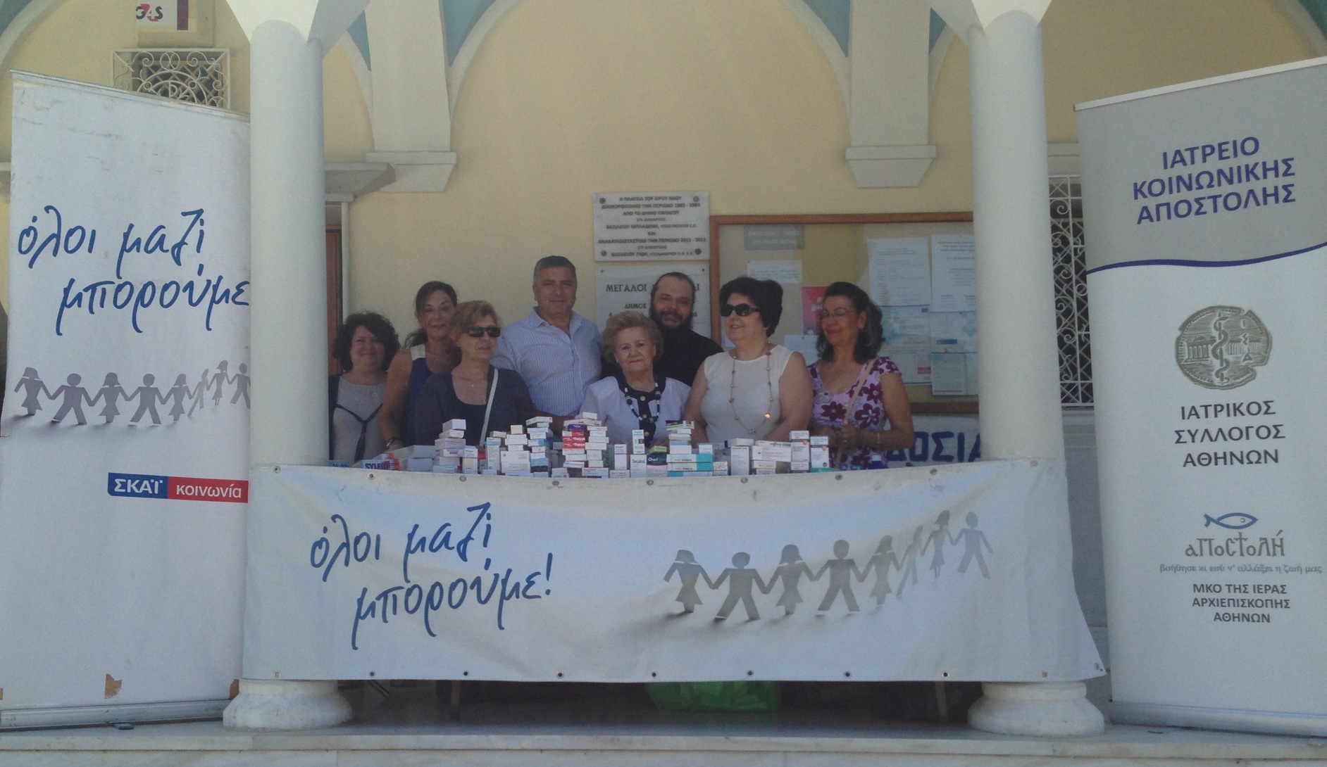Ολοκληρώθηκε με επιτυχία και σήμερα η δράση του Ιατρικού Συλλόγου Αθηνών και του Φιλανθρωπικού οργανισμού ΑΠΟΣΤΟΛΗ της Ιεράς Αρχιεπισκοπής Αθηνών «Όλοι μαζί μπορούμε και στην Υγεία» του ραδιοτηλεοπτικού Σταθμού ΣΚΑΙ, όπου συγκεντρώθηκαν στον Ιερό Ναό της Αγίας Σκέπης Παπάγου, συγκεντρώθηκαν 20 σάκοι με φαρμακευτικό και υγειονομικό υλικό. Στη συλλογή φαρμάκων παρευρέθησαν ο Προϊστάμενος του Ναού Πάτερ Νεκτάριος, ο Πρόεδρος του Ιατρικού Συλλόγου Αθηνών κος Πατούλης καθώς επισης και εθελοντές του ιατρείου κοινωνικής αποστολής . “Ευχαριστούμε από βάθους καρδίας όλους τους συμπολίτες μας που ανταποκρίθηκαν σε αυτό το κάλεσμα και μεμοναδικό ανθρωπισμό προσέφεραν τα φάρμακα που διέθετανή αγόρασαν. Αν μέσα από αυτή την προσπάθεια των χιλιάδων ανθρώπων που συμμετέχουν, σωθεί έστω και μία ζωή, τότε αξίζει κάθε βήμα της, τότε αξίζουμε όλοι μαζί. Γιατίόλοι μαζί, ενώνουμε τα χέρια σε μια Αγκαλιά Αγάπης σε όλη την Ελλάδα για όλους τους ανθρώπους που την κατοικούν. Γιατί υπάρχει και αυτή η Ελλάδα.” Ανέφερε ο προεδρος του ΙΣΑ κ. Πατούλης. « Είναι συγκινητική η ανταπόκριση του κόσμου και αυτό μας δίνει δύναμη και κουράγιο να συνεχίσουμε τον αγώνα μας με γνώμονα την ανακούφιση των φτωχών και άρρωστων συνανθρώπων μας. Επιτακτική ανάγκη προβάλλει να στηρίξουμε τους ανθρώπους που μας έχουν ανάγκη, που υποφέρουν και αντιμετωπίζουν πολλά προβλήματα στην υγεία τους», δήλωσε ο Γεν Διευθυντής της ΑΠΟΣΤΟΛΗΣ κος Δήμτσας. Το Ιατρείο Κοινωνικής Αποστολής λειτουργεί στα γραφεία του Ιατρικού Συλλόγου Αθηνών, στην οδό Σεβαστουπόλεως 113, Δευτέρα-Παρασκευή, από τις 9.00 το πρωί έως τις 3. 00 το μεσημέρι. Δέχεται ασθενείς, οι οποίοι είναι ανασφάλιστοι.Εκεί, μπορούν να εξετάζονται και να παραλαμβάνουν τα φάρμακά τους. Προκειμένου να εξετασθούν, θα πρέπει να προσκομίζουν: 1)ταυτότητα ή διαβατήριο ή δίπλωμα οδήγησης, ώστε να αποδεικνύεται η ταυτότητά τους 2)Βιβλιάριο Υγείας το οποίο έχει λήξει 3) Κάρτα ανεργίας, η οποία επίσης έχει λήξει.