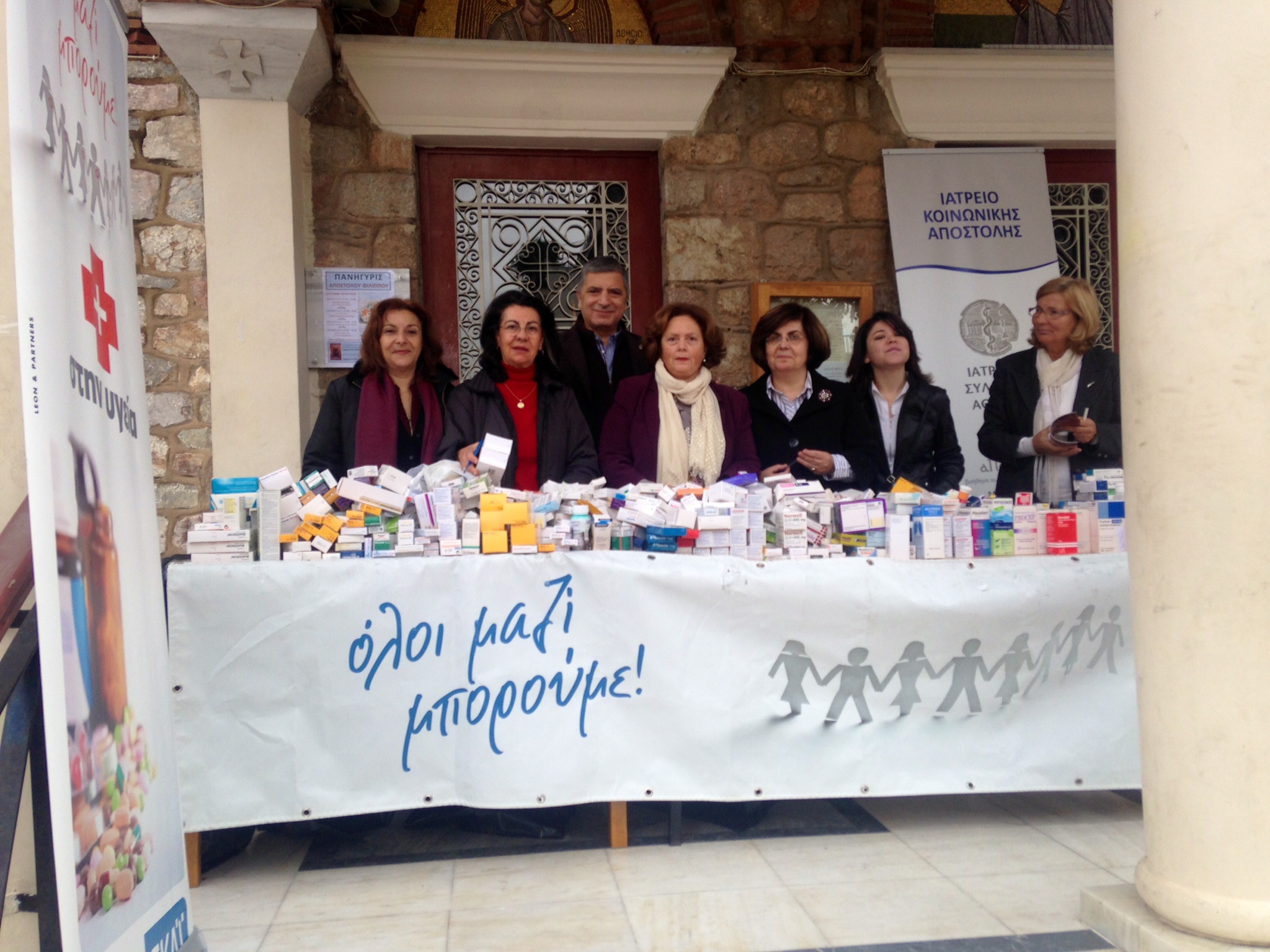 Ολοκληρώθηκε με επιτυχία και σήμερα η δράση του Ιατρικού Συλλόγου Αθηνών και του Φιλανθρωπικού οργανισμού ΑΠΟΣΤΟΛΗ της Ιεράς Αρχιεπισκοπής Αθηνών «Όλοι μαζί μπορούμε και στην Υγεία» του ραδιοτηλεοπτικού Σταθμού ΣΚΑΙ. Δεκάδες σάκοι φάρμακα συλλέχθηκαν στον Ιερό Ναό Άγιου Θεράποντος Ζωγράφου με την παρουσία του Προέδρου του ΙΣΑ κ. Γ. Πατούλη και των εθελοντών του ιατρείου κοινωνικής αποστολής του ΙΣΑ και της Ιεράς Αρχιεπισκοπής και ειδικότερα της κ. Κ. Περρέα , Μ. Παιδονόμου, Β. Παπαδοπούλου, Α. Παπαπροκοπίου και Ε. Δασκαλοπούλου. Στο πνευματικό κέντρο Ρουμελιωτών- ΝΠΙΔ κοινωφελές ίδρυμα συγκεντρώθηκαν δεκάδες φάρμακα και τρόφιμα. Στην κοινωνική αυτή δράση συνέδραμαν ο πρόεδρος του ΙΣΑ, το προεδρείο του κοινωφελούς ιδρύματος, η Ιατρός κ. Ε. Μελιάδου και άλλοι εθελοντές του ιατρείου κοινωνικής αποστολής. Ο Γ. Πατούλης δήλωσε: “Στον Ιερό Ναό Αγίου Θεράποντος Ζωγράφου οι πολίτες συνέδραμαν δίνοντας τον “οβολό” τους, το φάρμακο τους για τους ανασφάλιστους συμπολίτες μας, δίνοντας για άλλη μια φορά ηχηρό μήνυμα αλτρουισμού στη πολιτεία! Ο Ιατρικός Σύλλογος Αθηνών με την Αποστολή της Ιεράς Αρχιεπισκοπής και το ΣΚΑΙ θα συνεχίσουν με μεγαλύτερες ταχύτητες τις κοινωνικές δράσεις τους, μέχρι το κράτος να αναλάβει τις κοινωνικές ευθύνες του. Ευχαριστούμε θερμά και τον Σύνδεσμο Ρουμελιωτών που αυτό το Σάββατο αποτέλεσε πολύτιμο αρωγό του οδοιπορικού αλληλεγγύης συλλέγοντας με τους εθελοντές του ιατρείου μας τρόφιμα και φάρμακα για τους συμπολίτες μας που τα έχουν μεγάλη ανάγκη.” « Είναι συγκινητική η ανταπόκριση του κόσμου και αυτό μας δίνει δύναμη και κουράγιο να συνεχίσουμε τον αγώνα μας με γνώμονα την ανακούφιση των φτωχών και άρρωστων συνανθρώπων μας. Επιτακτική ανάγκη προβάλλει να στηρίξουμε τους ανθρώπους που μας έχουν ανάγκη, που υποφέρουν και αντιμετωπίζουν πολλά προβλήματα στην υγεία τους», δήλωσε ο Γεν Διευθυντής της ΑΠΟΣΤΟΛΗΣ κος Δήμτσας Το Ιατρείο Κοινωνικής Αποστολής λειτουργεί στα γραφεία του Ιατρικού Συλλόγου Αθηνών, στην οδό Σεβαστουπόλεως 113, Δευτέρα-Παρασκευή, από τις 9.00 το πρωί έως τις 3. 00 το μεσημέρι. Δέχεται ασθενείς, οι οποίοι είναι ανασφάλιστοι. Εκεί, μπορούν να εξετάζονται και να παραλαμβάνουν τα φάρμακά τους. Προκειμένου να εξετασθούν, θα πρέπει να προσκομίζουν: 1)ταυτότητα ή διαβατήριο ή δίπλωμα οδήγησης, ώστε να αποδεικνύεται η ταυτότητά τους 2)Βιβλιάριο Υγείας το οποίο έχει λήξει 3) Κάρτα ανεργίας, η οποία επίσης έχει λήξει. Για το Ιατρείο Κοινωνικής Αποστολής Ο Πρόεδρος του Ι.Σ.Α. Ο Γεν. Διευθυντής της ΜΚΟ «ΑΠΟΣΤΟΛΗ» Γιώργος Πατούλης Κωνσταντίνος Δήμτσας