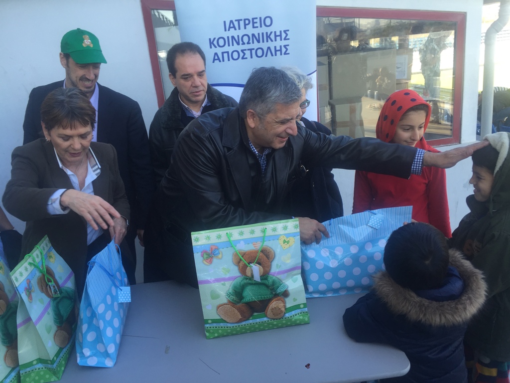 Στο πλαίσιο αυτής της «συμμαχίας ανθρωπιάς», ενόψει της Πρωτοχρονιάς, διοργανώθηκε ένα γεύμα αγάπης για τους 500 φιλοξενούμενους πρόσφυγες και μετανάστες στο Κέντρο του Ελληνικού και μοιράστηκαν δώρα στα παιδιά. Στη δράση συμμετείχε ο πρόεδρος του ΙΣΑ Γ .Πατούλης και οι εθελοντές του Ιατρείου Κοινωνικής Αποστολής , εθελόντριες του Ιδρύματος «Μαριάννα Β. Βαρδινογιάννη», ο Διοικητής του Νοσοκομείου Παίδων «Αγία Σοφία», Εμμ. Παπασάββας και ο Διευθυντής της «Αποστολής» Κ. Δήμτσας.