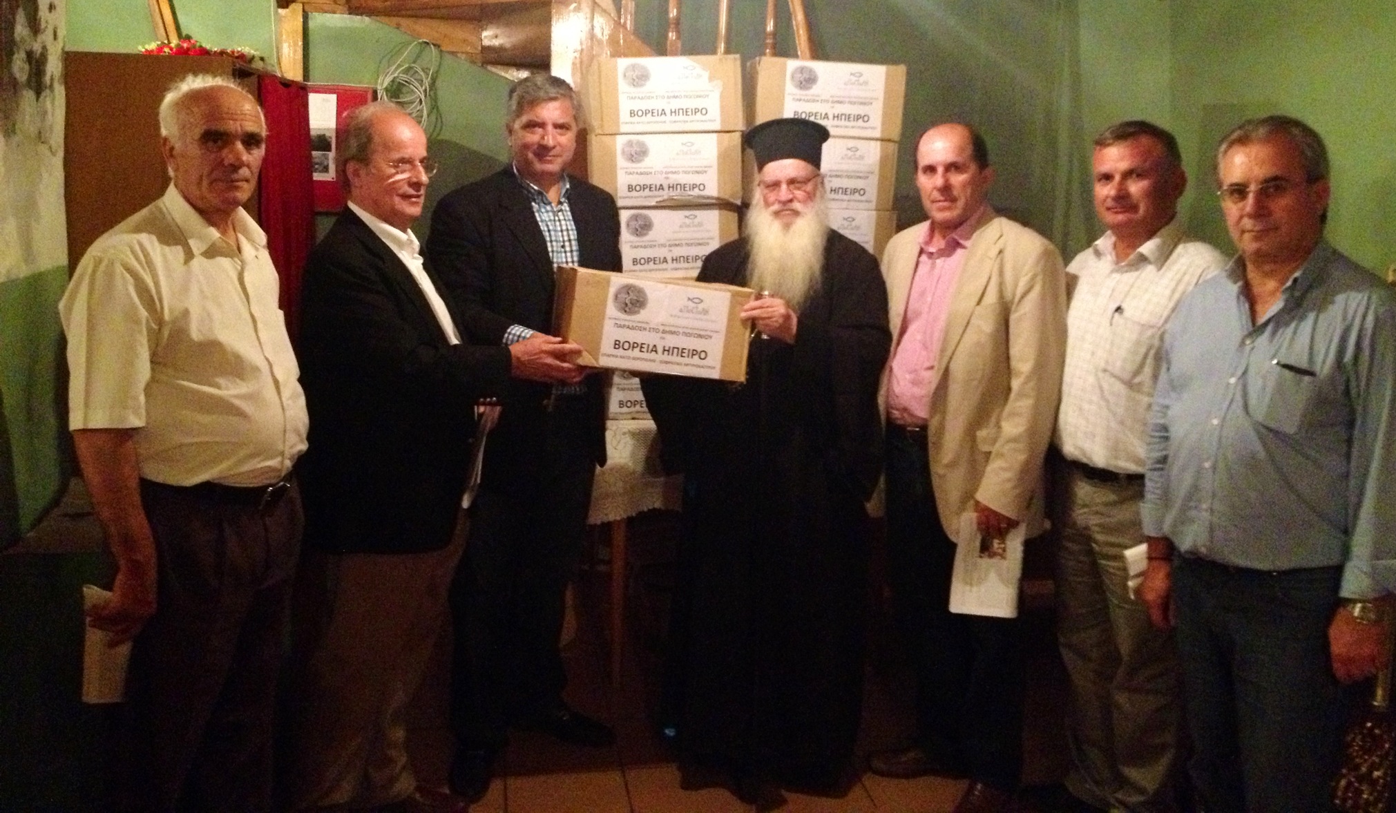 Ο Πρόεδρος του ΙΣΑ Γ.Πατούλης με το Σεβασμιότατο Μητροπολίτη Αργυροκάστρου κ.Δημήτριο, τον τ.Υπουργό Α.Φούσα, τον Πρόεδρο της ΕΚΕ Σ.Φούσα και τον Δήμαρχο Δερβιτσάνης Φ.Γκούτσα την παράδοση φαρμάκων στη Δερβιτσάνη