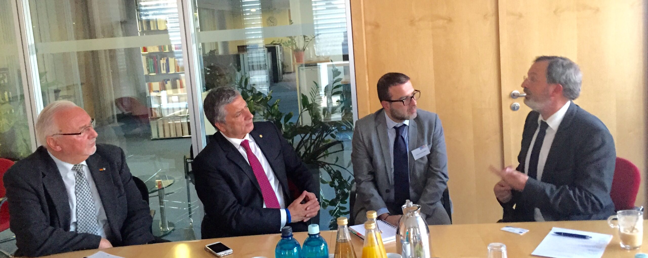 Εποικοδομητική συνάντηση του προέδρου του ΙΣΑ Γ. Πατούλη, με τον πρόεδρο του Ιατρικού Συλλόγου Βερολίνου J. Guenter Την ανάγκη συσπείρωσης του Ιατρικού κόσμου της Ευρώπης, για να διασφαλιστεί η Δημόσια υγεία και να αντιμετωπιστούν τα μείζονα υγειονομικά προβλήματα που προκύπτουν από το μεταναστευτικό ρεύμα, τόνισε ο πρόεδρος του ΙΣΑ κ. Γ. Πατούλης, στο πλαίσιο της συνάντησής του, με τον πρόεδρο του Ιατρικού Συλλόγου Βερολίνου κ. Jonitz Guenter. Ο κ. Πατούλης τόνισε στην ανάγκη, να δημιουργηθεί ένα κοινό πλαίσιο για την υγειονομική κάλυψη των Ευρωπαίων, με τη δημιουργία της Κάρτας Υγείας η οποία θα προβλέπει ένα βασικό επίπεδο παροχών για όλους τους πολίτες της Ευρώπης. Ακόμη αναφέρθηκε στις νέες υγειονομικές ανάγκες που προκύπτουν από το μεταναστευτικό ρεύμα και παρουσίασε τις δράσεις για τον εμβολιασμό και τη συμπλήρωση του Βιβλιάριου Υγείας παιδιών προσφύγων και μεταναστών που φτάνουν στη χώρα μας. Επίσης έγινε συζήτηση για τους Έλληνες γιατρούς που εργάζονται ή προτίθενται να εργαστούν στη Γερμανία και ο πρόεδρος του ΙΣΑ τόνισε ότι θα πρέπει να έχουν ισότιμες επαγγελματικές συνθήκες και ευκαιρίες. Παράλληλα έγινε ανταλλαγή απόψεων πάνω στη φαρμακευτική πολιτική και συμφωνήθηκε να ανοίξει ο διάλογος, με την ανταλλαγή αρθρογραφίας στα περιοδικά των Συλλόγων. Ο κ. Guenter εξέφρασε την πρόθεση να υπάρξει στήριξη του Ιατρείου Κοινωνικής Αποστολής και για το λόγο αυτό θα τεθεί ο αριθμός λογαριασμού του Ιατρείου, στη διάθεση όσων θα ήθελαν να συνδράμουν το έργο του. «Αναλαμβάνουμε πρωτοβουλία να συσπειρώσουμε τον ιατρικό κόσμο της Ευρώπης, για την αντιμετώπιση από κοινού, των υγειονομικών προβλημάτων και τη διασφάλιση ενός βασικού επίπεδου παροχών υγείας, για όλους τους Ευρωπαίους και ιδιαίτερα τους κατοίκους των χωρών που έχουν πληγεί από την οικονομική κρίση», επισημαίνει ο κ. Πατούλης. «Η υγεία είναι κοινό αγαθό και τα υγειονομικά προβλήματα δεν γνωρίζουν σύνορα. Για το λόγο αυτό είναι σημαντικό ο ιατρικός κόσμος της Ευρώπης να ενώσει τις δυνάμεις του», κατέληξε ο πρόεδρος του ΙΣΑ.