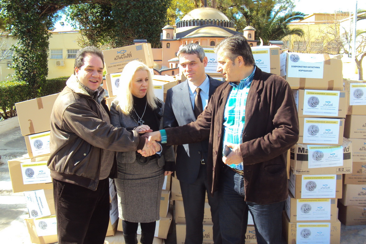 Στα πλαίσια αυτά, ο Ιατρικός Σύλλογος Αθηνών και η ΑΠΟΣΤΟΛΗ της Ιεράς Αρχιεπισκοπής Αθηνών παρέδωσαν, μέσα από το Ιατρείο Κοινωνικής Αποστολής, μεγάλη ποσότητα με φαρμακευτικό υλικό για την κάλυψη των αναγκών των κρατουμένων σε ό,τι αφορά αντιβιοτικά, αντιϊκά, αντιμηκυτιασικά, ανθελμινθικά, αντιφυματικά, αντιυπερτασικά, γραστροπροστατευυτικά φάρμακα, καθώς και σίδηρο, βιταμίνες και άλλα φάρμακα πρώτης ανάγκης., καθώς και μεγάλες ποσότητες αναλωσίμων υγειονομικού υλικού. Η αποστολή του φαρμακευτικού υλικού πλαισιώθηκε παράλληλα από μεγάλη ποσότητα ανθρωπιστικής βοήθειας της ΑΠΟΣΤΟΛΗΣ σε τρόφιμα, ρούχα και υλικά πρώτης ανάγκης.
