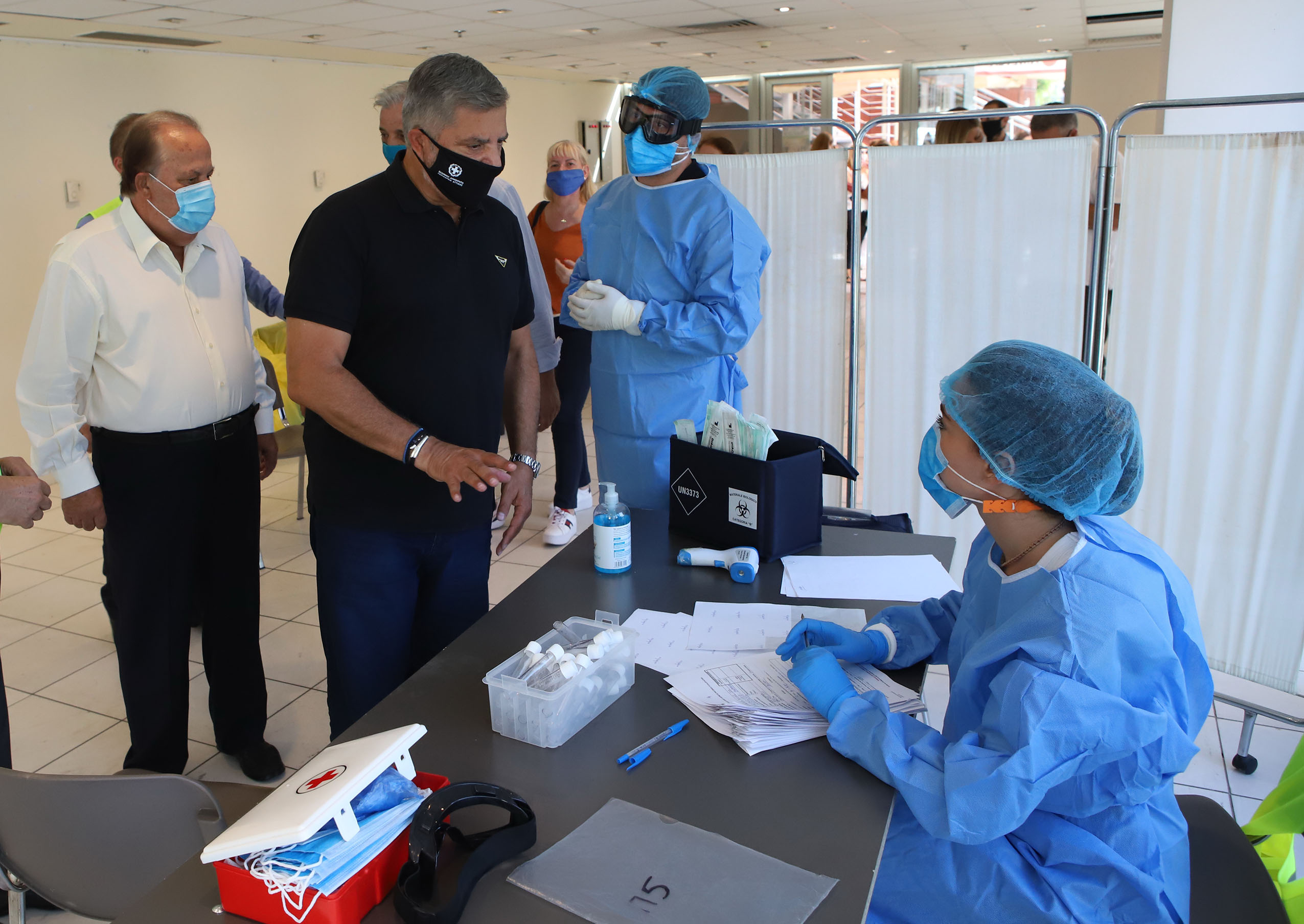 Ο Πρόεδρος του ΙΣΑ και Περιφερειάρχης Αττικής Γ. Πατούλης κατά τη διάρκεια της δειγματοληψίας είχε την ευκαιρία να ενημερωθεί για τη πορεία υλοποίησής της, ενώ ο αντιδήμαρχος Υγείας Περιστερίου Γ. Μπεκιάρης, ο Πρόεδρος του Οργανισμού Προσχολικής Αγωγής, Αθλητισμού και Πρόνοιας (ΟΠΑΑΠ) Α. Πλέτσης, καθώς και η Αντιπρόεδρος Ε. Ιατροπούλου, εξέφρασαν τις θερμές ευχαριστίες τους για τη θετική ανταπόκρισή τους στο κάλεσμα τους για την πραγματοποίηση της σχετικής δράσης. Το δειγματοληπτικό έλεγχο συντόνιζε ο επικεφαλής του Κέντρου Επιχειρήσεων της Περιφέρειας Αττικής και του ΙΣΑ Δρ. Πάνος Ευσταθίου, ενώ στο σημείο βρέθηκε και ο αρμόδιος Αντιπεριφερειάρχης Υγείας Θ. Βαθιώτης.