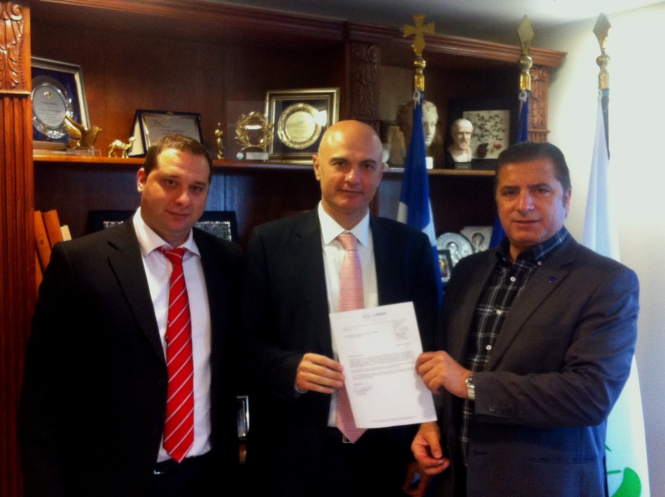 Εκπρόσωποι της εταιρίας παρέδωσαν χρηματικό ποσό για το σκοπό αυτό στον Πρόεδρο του Ι.Σ.Α Γ. Πατούλη