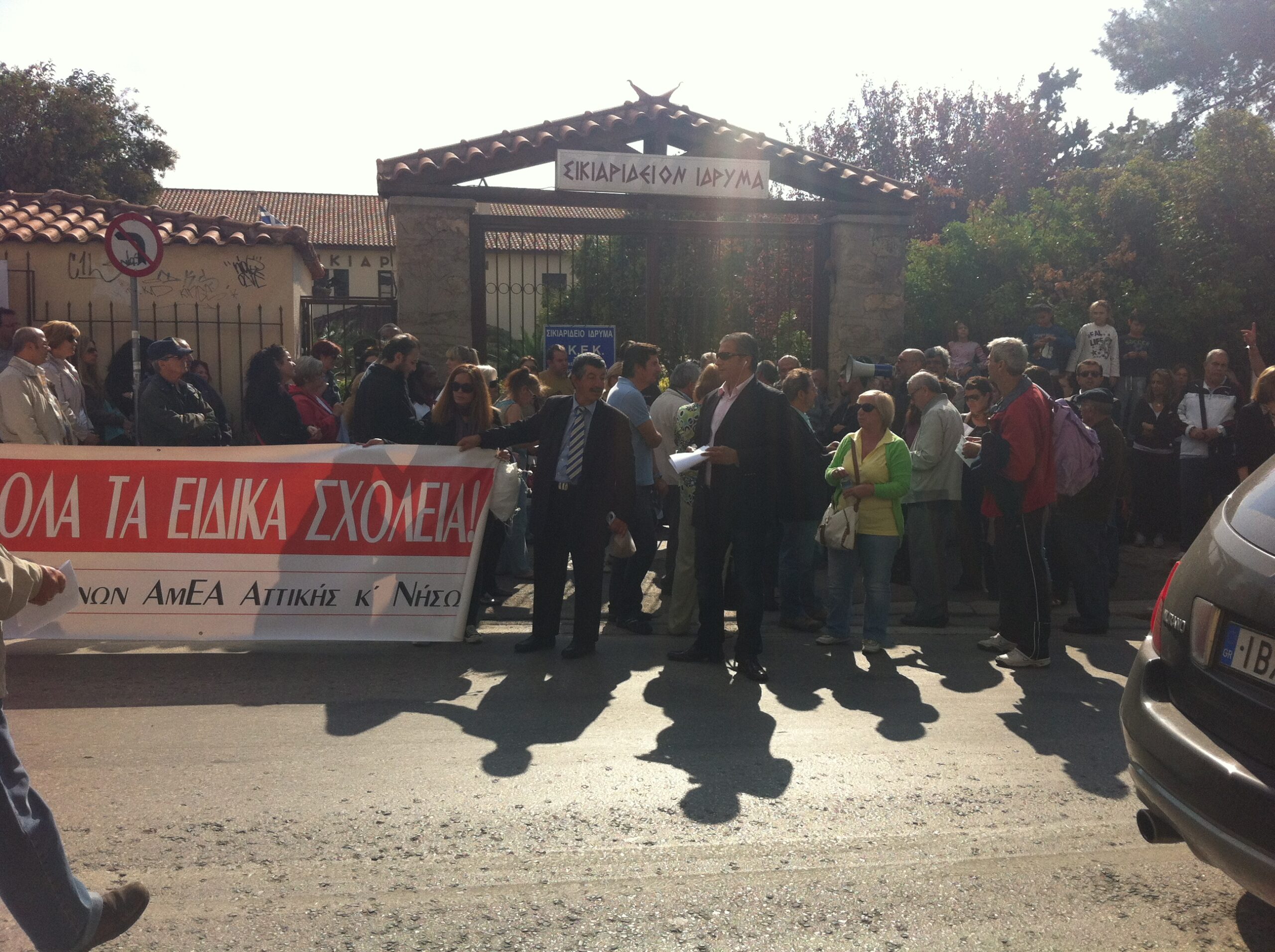 Περισσότερα από 200 παιδιά με νοητική υστέρηση 14-21 χρόνων αποκλείονται από την ένταξη στο κοινωνικό σύνολο, την εκπαίδευση καταξιωμένων από καταξιωμένους ειδικούς παιδιαγωγούς και καταδικάζονται όχι μόνο στην εσωστρέφεια, αλλά και παράλληλα και στην απραξία, χάνοντας πια το δικαίωμα της εκπαίδευσης και της επαγγελματικής κατάρτισης στην υφαντική και σε άλλες τέχνες. Για το Σικιαρίδειο ίδρυμα, που παρείχε πολύτιμο έργο στην ΕΝΤΑΞΗ των παιδιών με νοητική υστέρηση ώστε να έχουν ισότιμη προσβασιμότητα σε όλα τα επίπεδα της κοινωνίας μας, ο Δήμος Αμαρουσίου έκανε μεγάλο αγώνα και εξάντλησε κάθε δυνατότητα παρέμβασης προς το Υπουργείο Παιδείας, καταφέρνοντας να διατηρηθεί σε λειτουργία το νηπιαγωγείο και το δημοτικό, όμως η προσπάθεια για τη μερίδα των παιδιών ηλικιών 14-21 ετών που σύμφωνα με το κληροδότημα του Ιδρύματος υπήρχε η δέσμευση του κράτους ότι θα επιδοτούντο, δεν ευοδώθηκε. Έτσι λοιπόν σήμερα, δίπλα στους γονείς των παιδιών του Ιδρύματος και τους ουσιαστικά απολυμένους εργαζόμενους, συμπαραστάθηκε στη συγκέντρωση διαμαρτυρίας του Σικιαρίδιου Ιδρύματος ο Πρόεδρος του Ι.Σ.Α. κος Γιώργος Πατούλης, η Βουλευτής του ΣΥΡΙΖΑ κα Σοφία Σακοράφα, οι παρατάξεις του δημοτικού συμβουλίου, ο Πρόεδρος ΔΣ κος Γαρδέλης, ο αντιδήμαρχος κος Αλεπούς και οι δημοτικοί σύμβουλοι κος Σμυρνής, ο κος Μαγιάκης, ο κος Φωτόπουλος ο κος Κούκουζας, ο κος Πολυχρονιάδης καθώς και πολλοί γονείς, παιδιά εργαζόμενοι κα φορείς του Αμαρουσίου και Πεντέλης.