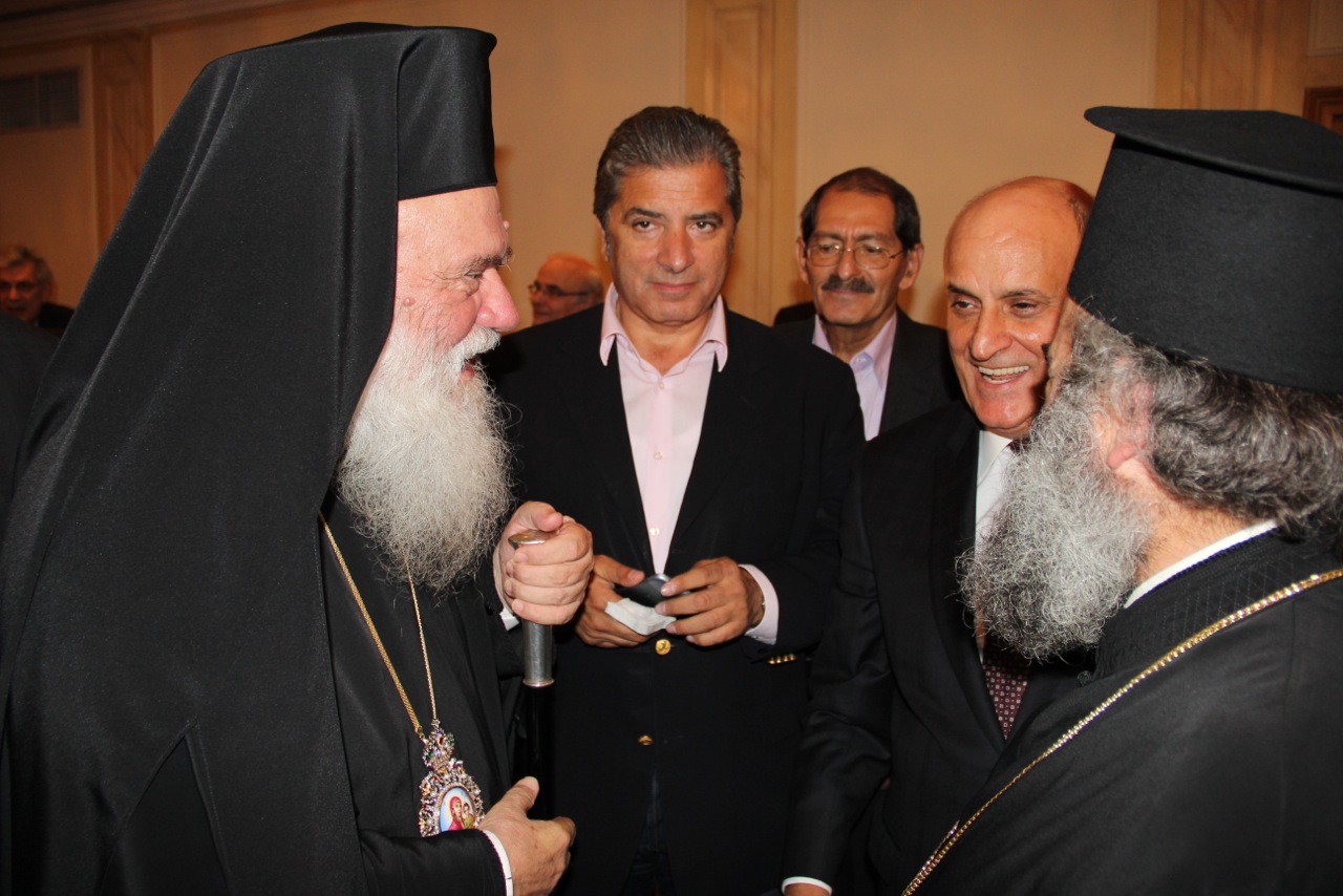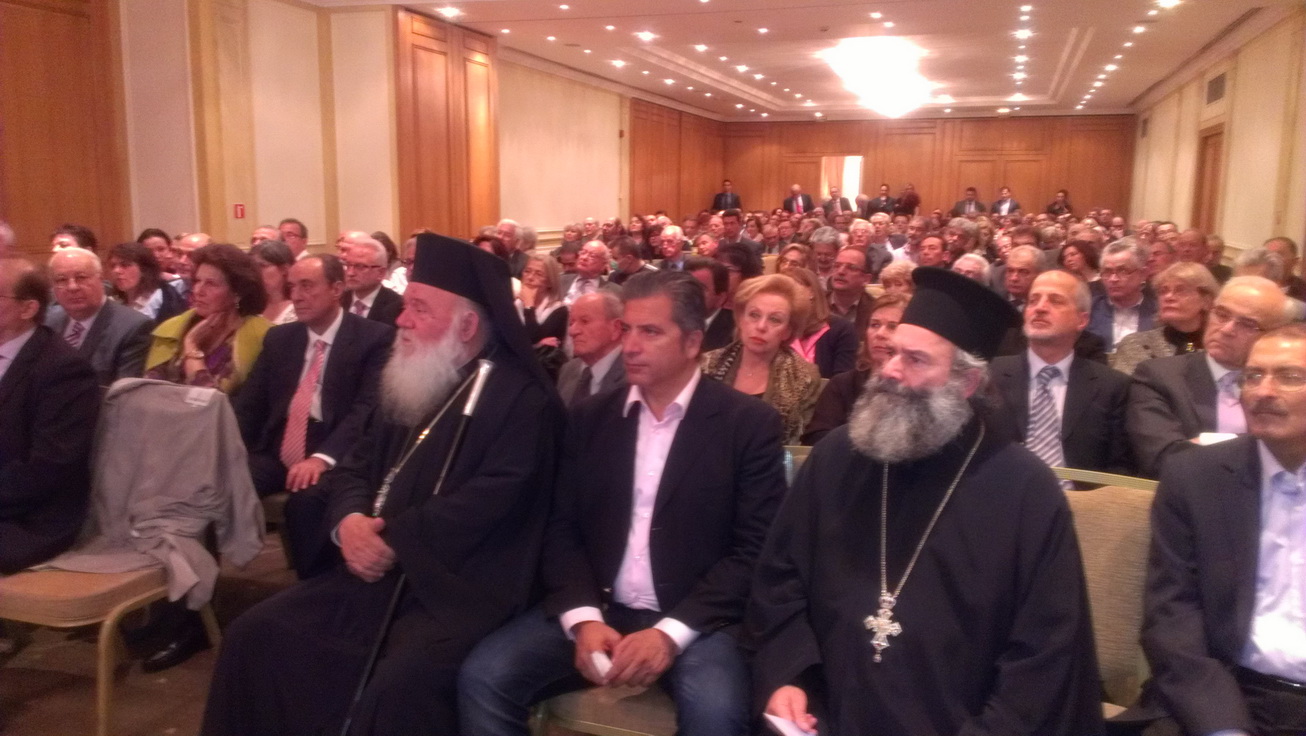 Ο Μακαριότατος Αρχιεπίσκοπος κκ Ιερώνυμος Β΄με τον Πρόεδρο του ΙΣΑ κο Πατούλη στην εναρκτήρια τελετή της ημερίδας