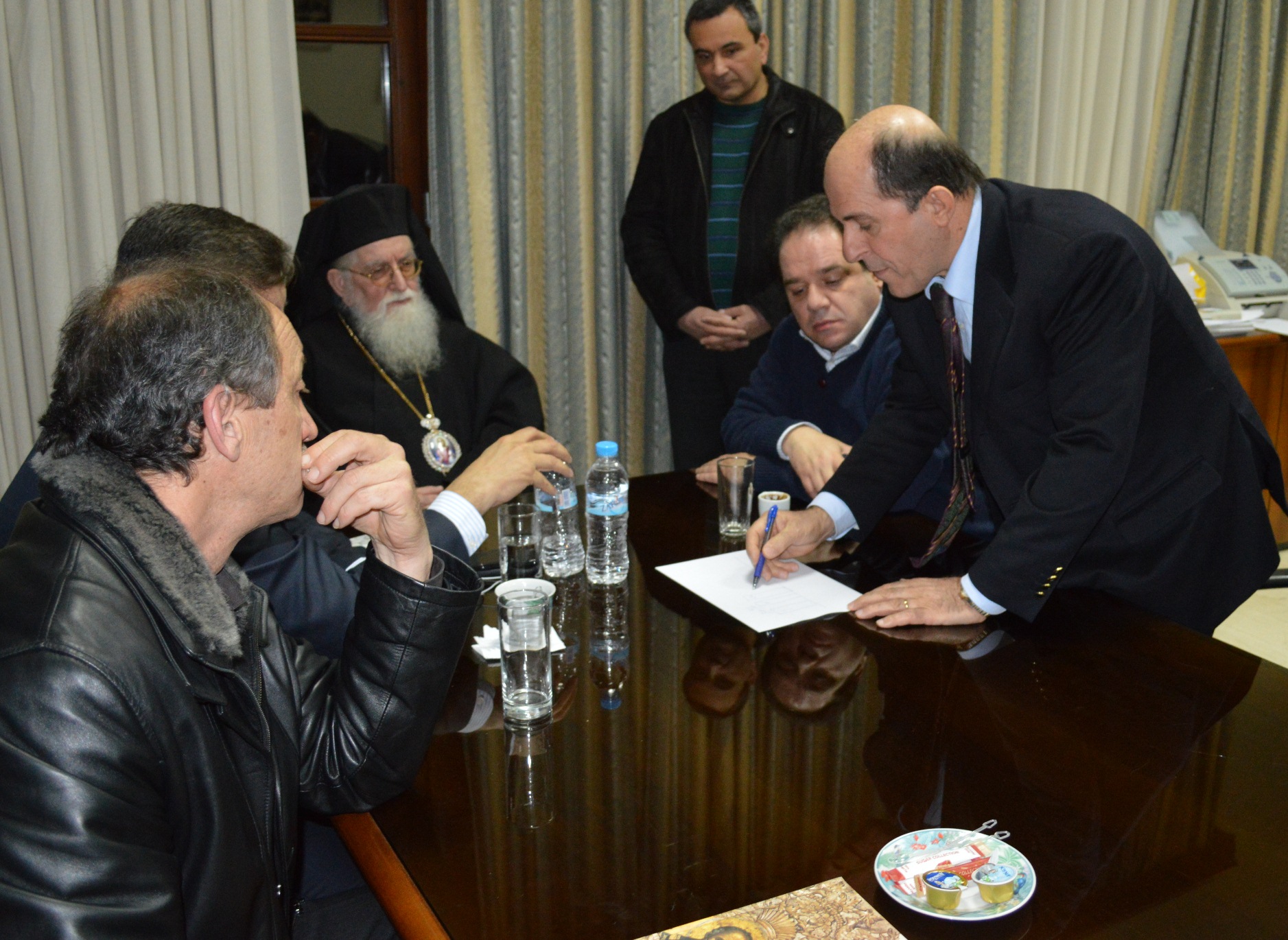Ο κος Πατούλης, ο κος Δήμτσας και ο κος Φούσας με τον Σεβασμιότατο Μητροπολίτη κ Ανδρέα και το Δήμαρχο Κόνιτσας κο Γαργάλα ο Πρόεδρος του ΙΣΑ κος Πατούλης, ο Πρόεδρος της ΕΚΕ κος Φούσας με το Δήμαρχο Κόνιτσας