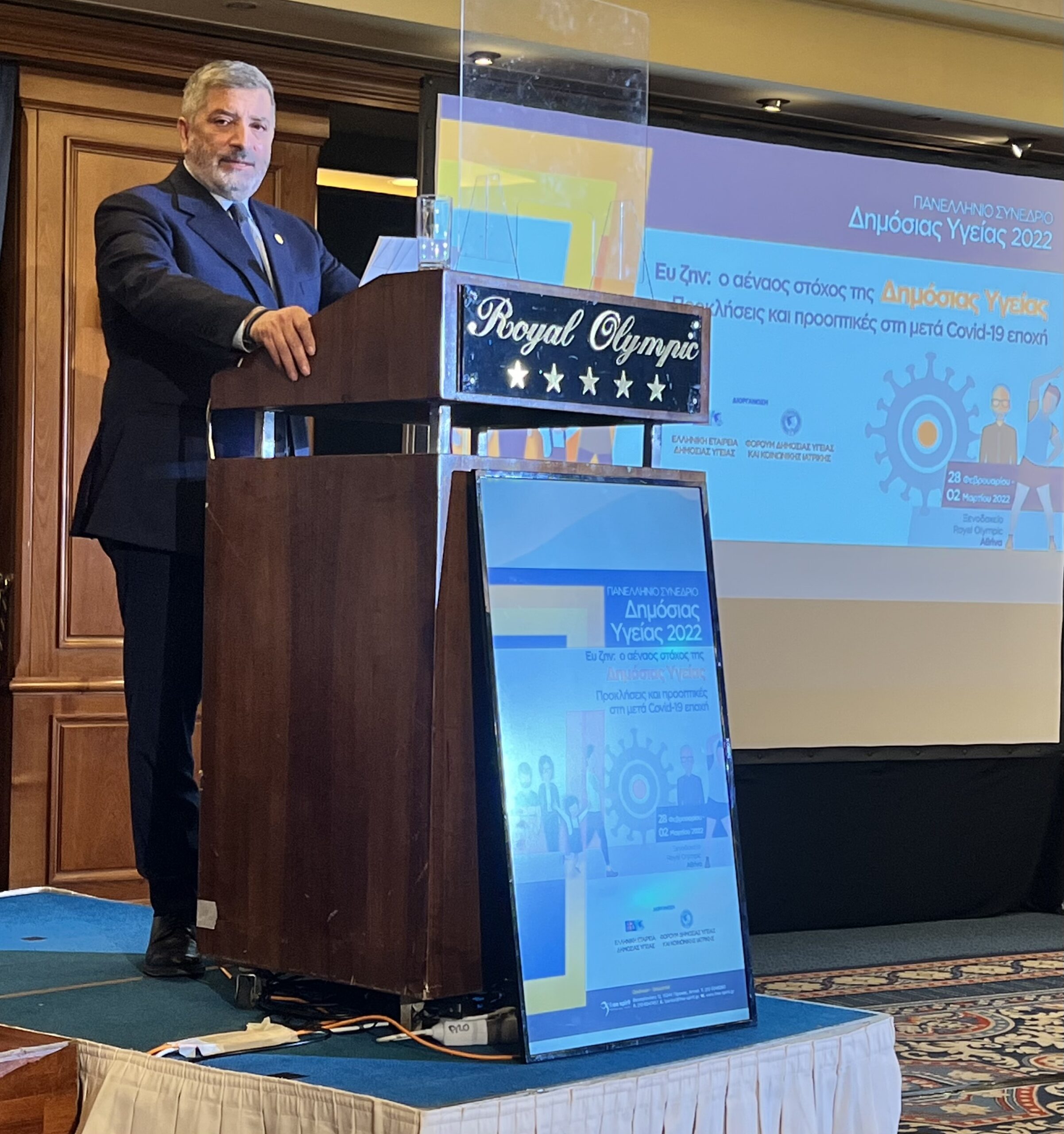 Στις υγειονομικές επιπτώσεις του πολέμου στην Ουκρανία και στην ανάγκη να προστατευθεί η δημόσια υγεία, αναφέρθηκε μεταξύ άλλων, ο Πρόεδρος του ΙΣΑ Γ. Πατούλης, στο πλαίσιο του χαιρετισμού του, στο Πανελλήνιο Συνέδριο Δημόσιας, το οποίο γίνεται στην Αθήνα (28/2 – 2/3 2022), με τη συμμετοχή κορυφαίων επιστημόνων του χώρου, παρουσία του Υφυπουργού Παιδείας και Θρησκευμάτων κ. Ά. Συρίγου. Το Συνέδριο διοργανώνεται από την Ελληνική Εταιρία Δημόσιας Υγείας (ΕΕΔΥ) και το Φόρουμ Δημόσιας Υγείας και Κοινωνικής Ιατρικής, υπό την προεδρεία της Ομότιμης Καθηγήτριας ΕΣΔΥ κ. Τζένης Κουρέα – Κρεμαστινού.         IMG 6773