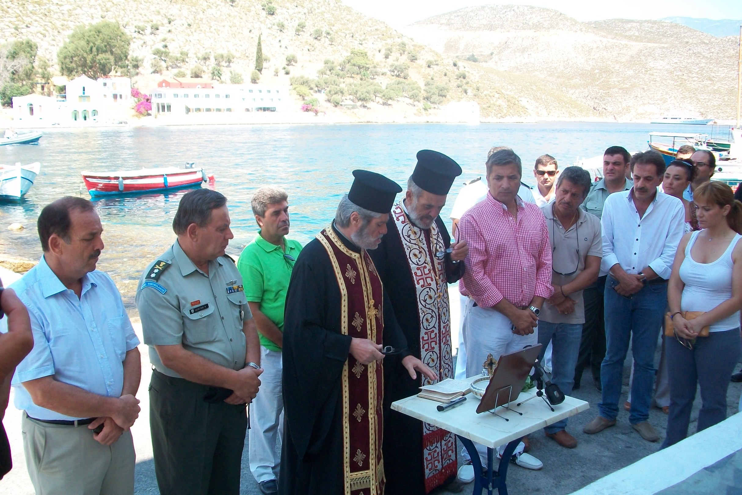 Αγιασμός για την εγκαινίαση του Παραρτήματος Μεγίστης από τον Συντ/ρχη Π. Νικήτας Βελεγράκης, δ/τή Στρατιωτικών Ιερέων ΓΕΝ και τον εφημέριο του Καστελόριζου Π. Γεώργιο