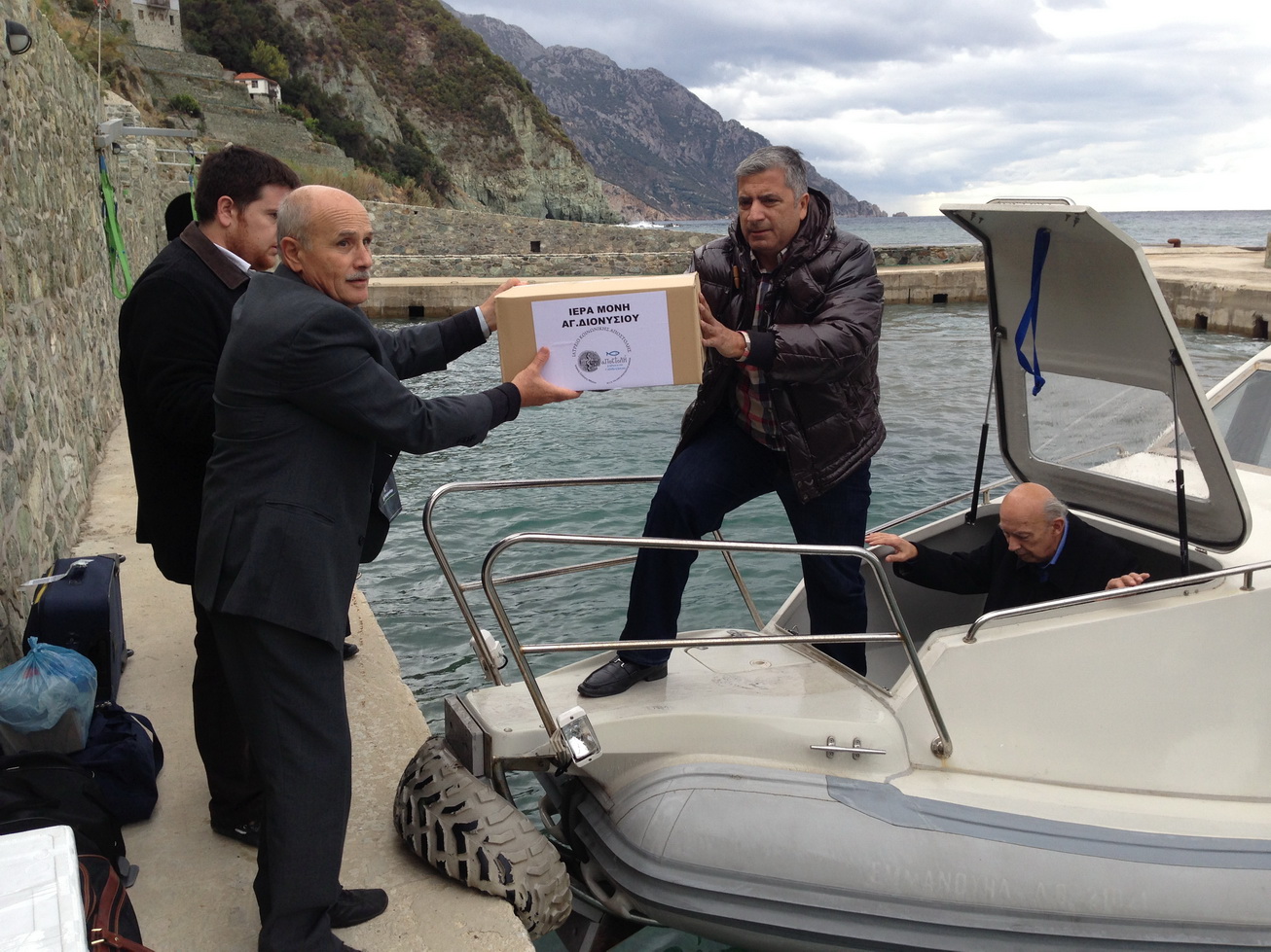 Υπό δυσμενείς καιρικές συνθήκες εισήλθαν στη Χερσόνησο του Άθω με σκάφος Ιεράς Μονής, ο Πρόεδρος του Ιατρικού Συλλόγου Αθηνών και Δήμαρχος Αμαρουσίου Γιώργος Πατούλης, συνοδευόμενος από τον Πατ. Λάμπρο Ανδρεάκη, Προϊστάμενο ΙΝ Αγ.Αθανασίου Πολυδρόσου Αμαρουσίου και τον επίτιμο Πρόεδρο του Ιατρικού Συλλόγου Αθηνών Σωτήρη Ρηγάκη. Η αποστολή θα διανυκτερεύσει την Ιερά Μονή Διονυσίου και αύριο θα μεταβεί στην πρωτεύουσα του Αγίου Όρους, στις Καριές, όπου ο Πρόεδρος του Ιατρικού Συλλόγου Αθηνών θα επιδώσει, παρουσία του Οικουμενικού Πατριάρχη Κωνσταντινουπόλεως κκ Βαρθολομαίου, στις 12:00μμ ιατροφαρμακευτικό υλικό από το Ιατρείο Κοινωνικής Αποστολής του Ιατρικού Συλλόγου Αθηνών και της Αποστολής της Ιεράς Αρχιεπισκοπής Αθηνών στην Αθωνιάδα Εκκλησιαστική Ακαδημία. Την αποστολή συνοδεύουν επίσης, ο υπεύθυνος Δη.Σχεσεων Δήμου Αμαρουσίου Θ.Τόλιας, ο Θεολόγος Δ.Παλιάκης και ο Επίτροπος ΙΝ Αγ.Αθανασίου Αμαρουσίου Κ. Γιαννακόπουλος