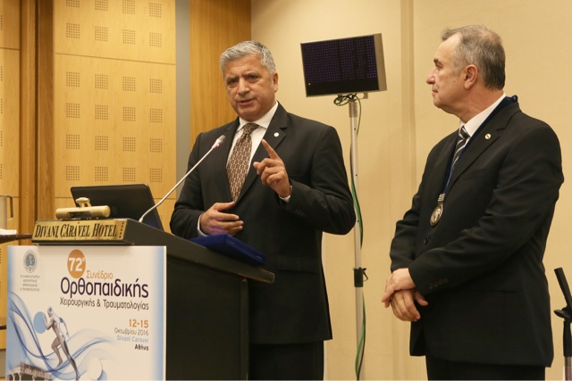 Γ. Πατούλης: «Η προσπάθεια δεν σταματάει εδώ. Συνεχίζουμε με σταθερό προσανατολισμό την ανακούφιση όλο και περισσότερων συμπολιτών μας» Τιμητικό βραβείο για το επιστημονικό και κοινωνικό του έργο που έχει προσφέρει ως Πρόεδρος του ΙΣΑ και της ΚΕΔΕ, Αντιπρόεδρος του Συμβουλίου Δήμων και Περιφερειών της Ευρώπης και Δήμαρχος Αμαρουσίου, απένειμε στον κ. Γιώργο Πατούλη, με ομόφωνη απόφαση του το Δ.Σ της Ορθοπαιδικής Εταιρείας. Κατά την έναρξη του 72ου Συνεδρίου Ορθοπαιδικής Χειρουργικής και Τραυματολογίας, παρουσία του Αντιπροέδρου της Βουλής Ν. Κακλαμάνη, του πρώην υφ. Υγείας Αθ. Γιαννόπουλου, πολλών προσωπικοτήτων από τον χώρο της ιατρικής και πλήθους κόσμου, ο Πρόεδρος της Ελληνικής Ορθοπαιδικής Εταιρείας Π. Ευσταθίου εξήρε την κοινωνική προσφορά του κ. Πατούλη και αναφέρθηκε στις πρωτοβουλίες που έχει αναλάβει για την ανακούφιση των πολιτών, σε αυτή την κρίσιμη χρονική συγκυρία, για τη χώρα. Παραλαμβάνοντας το βραβείο του ο κ. Πατούλης ευχαρίστησε το ΔΣ της Ορθοπαιδικής Εταιρείας για την τιμητική διάκριση και δήλωσε τα εξής: «Η σημερινή μέρα είναι πολύ σημαντική για μένα καθώς είναι πάντα πολύ τιμητικό να αναγνωρίζεται η προσπάθεια προσφοράς στο κοινωνικό σύνολο. Η συγκίνηση μου αυτή τη φορά είναι μεγαλύτερη καθώς αυτή η αναγνώριση έρχεται από την «οικογένεια» μου, τους συναδέλφους ιατρούς. Με πρωτοβουλία του ΙΣΑ, δημιουργήσαμε το Ιατρείο Κοινωνικής Αποστολής μαζί με την Ιερά Αρχιεπισκοπή Αθηνών και σε συνεργασία με ένα ευρύ δίκτυο φορέων, το Εθνικό Διαδημοτικό Δίκτυο Υγιών Πόλεων, αλλά και μέσω της ΚΕΔΕ κινητοποιήσαμε όλη την τοπική αυτοδιοίκηση, με στόχο να δημιουργήσαμε μία ασπίδα προστασίας για τις ευπαθείς ομάδες, τους ανασφάλιστους και τους ανθρώπους που έχουν ανάγκη τη βοήθεια μας. Χέρι-χέρι μαζί και με τους εθελοντές μας, στήσαμε μία αλυσίδα ανθρωπιάς και αλληλεγγύης. Σε αυτή τη δύσκολη οικονομική και κοινωνική συγκυρία που βρίσκεται η χώρα μας δεν δικαιούμαστε να εφησυχάζουμε ούτε να γυρνάμε την πλάτη στους συνανθρώπους μας, που μας έχουν ανάγκη. Οφείλουμε να σκύψουμε πάνω από τα προβλήματα τους και με συντονισμένες προσπάθειες να εργαζόμαστε για τη βελτίωση της ποιότητας της ζωής τους. Η προσπάθεια μας δεν σταματάει εδώ. Συνεχίζουμε με σταθερό προσανατολισμό την ανακούφιση όλο και περισσότερων συμπολιτών μας».