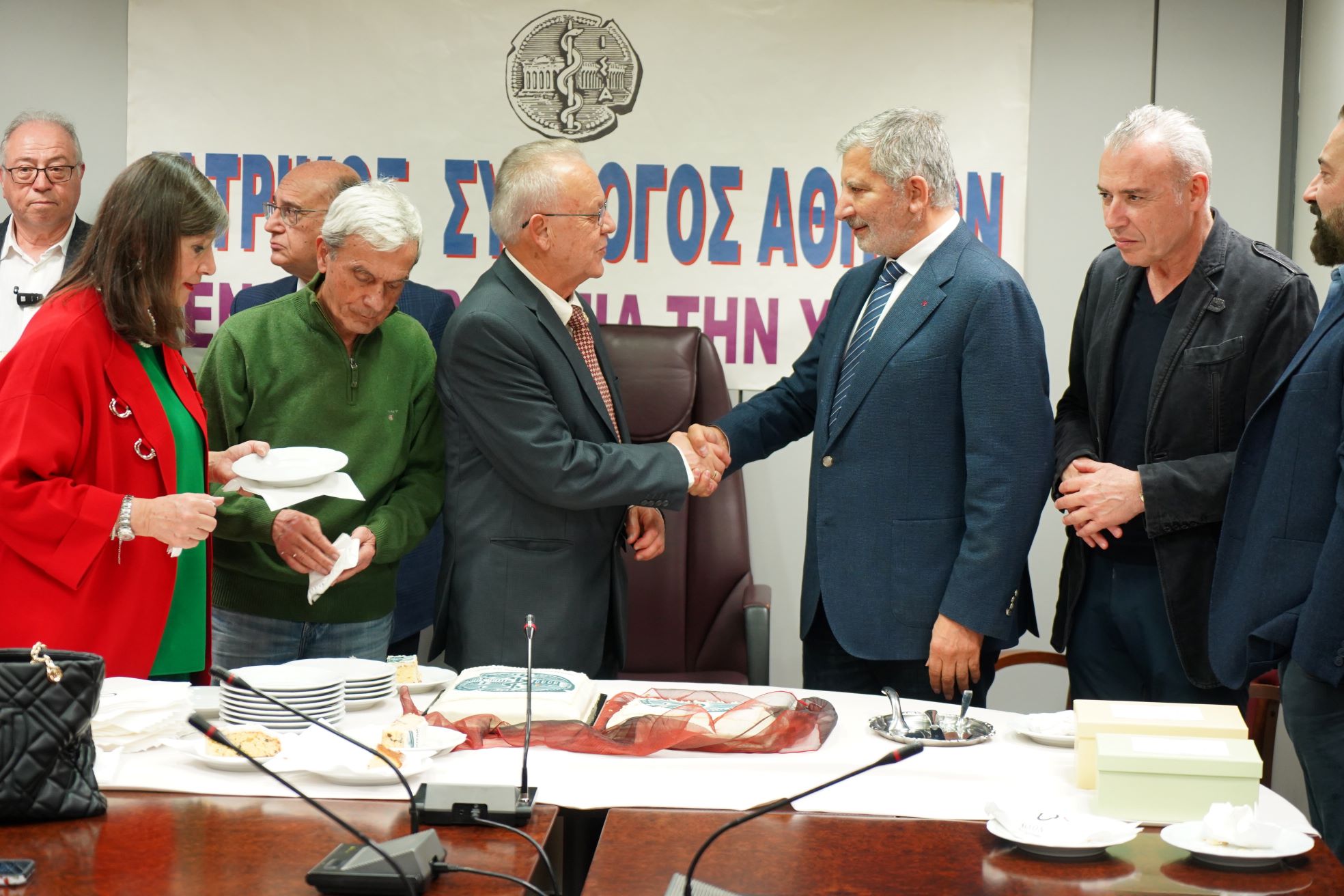 Γ. Πατούλης : «Ο ΙΣΑ θα συνεχίσει να δίνει μάχη, για τους γιατρούς, τον ασθενή και τη δημόσια υγεία» Η κοπή της καθιερωμένης Πρωτοχρονιάτικης πίτας του ΙΣΑ, πραγματοποιήθηκε στα γραφεία του Συλλόγου. Ο Πρόεδρος του ΙΣΑ Γ. Πατούλης, ευχαρίστησε τα μέλη του Δ.Σ, του Πειθαρχικού Συμβουλίου, τους εργαζόμενους του Συλλόγου και τους εθελοντές του Ιατρείου Κοινωνικής Αποστολής, για την προσπάθεια που καταβάλλουν και δεσμεύθηκε ότι ο ΙΣΑ θα συνεχίσει να δίνει μάχη για τον γιατρό, τον ασθενή και τη δημόσια υγεία. Επίσης αναφέρθηκε στο σημαντικό έργο του ψηφιακού εκσυγχρονισμού του ΙΣΑ που βρίσκεται σε εξέλιξη. Ειδικότερα, ο κ. Πατούλης τόνισε τα εξής: «Δεσμευόμαστε για άλλη μια φορά ότι ο ΙΣΑ θα συνεχίσει να δίνει μάχη για τους γιατρούς τους ασθενείς και τη δημόσια υγεία. Είμαστε περήφανοι για τα μέλη μας, τους γιατρούς της Αθήνας για το υψηλό επιστημονικό τους επίπεδο και τη δέσμευσή τους απέναντι στον ασθενή, όπως αποδείχθηκε στη μεγάλη υγειονομική κρίση που πέρασε η πατρίδα μας. Ο ΙΣΑ θα επενδύσει ακόμα περισσότερο αυτή τη χρονιά, στις νέες τεχνολογίες για την καλύτερη εξυπηρέτηση των μελών του με την αξιοποίηση κονδυλίων του ΕΣΠΑ ενώ θα συνεχίσει να βρίσκεται στην πρώτη γραμμή ως θεματοφύλακας της δημόσιας υγείας» Στο πλαίσιο της εκδήλωσης, ο Πρόεδρος του ΙΣΑ απένειμε τιμητικές πλακέτες σε δύο εργαζόμενους που αποχώρησαν της κυρίας Ελένης Παΐζης μετά από 48 χρόνια και του κυρίου Κώστα Γιαννοπούλου μετά από 43 χρόνια, ευδόκιμης παρουσίας και προσφοράς στον ΙΣΑ.