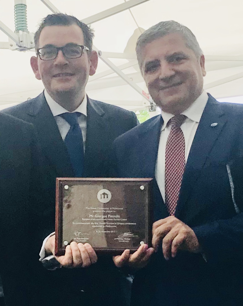 Η καρδιά της Ελλάδας χτύπησε στη Μελβούρνη της Αυστραλίας, σε μια συγκινητική εκδήλωση, στο πλαίσιο της οποίας ο Πρωθυπουργός της Πολιτείας Βικτώρια της Αυστραλίας Daniel Andrews ένωσε τη φωνή του με τον πρόεδρο του ΙΣΑ και της ΚΕΔΕ Γιώργο Πατούλη, για την επιστροφή των Γλυπτών του Παρθενώνα στην Ελλάδα. Εκπρόσωποι της κυβέρνησης της Αυστραλίας και της τοπικής αυτοδιοίκησης καθώς και πλήθος κόσμου συμμετείχαν στην εκδήλωση, για την παρουσίαση πιστού αντιγράφου τμήματος της ζωφόρου του Παρθενώνα που τοποθετήθηκε στην είσοδο του κτιρίου της Ελληνικής Κοινότητας Μελβούρνης, η οποία συμπλήρωσε 120 χρόνια από την ίδρυσή της. Η εκδήλωση συνέπεσε με το Συνέδριο για τον Τουρισμό Υγείας, στην Ελλάδα που διοργανώνουν το Διεθνές Κέντρο Τουρισμού Υγείας και το Παγκόσμιο Ινστιτούτο Ελλήνων Γιατρών, σε συνεργασία με την Ελληνική Κοινότητα Μελβούρνης και τον Ελληνικό Ιατρικό Σύλλογο Μελβούρνης, υπό την αιγίδα του Ιατρικού Συλλόγου Αθηνών και της Κεντρικής Ένωσης Δήμων Ελλάδος, στις 25 και 26 Νοεμβρίου 2017. Ειδικότερα ο Πρωθυπουργός της πολιτείας Βικτώρια της Αυστραλίας Daniel Andrews δήλωσε: «Ζητάμε την επιστροφή των Μαρμάρων του Παρθενώνα στην πατρίδα τους και θα συνεργαστούμε μαζί σας για να βοηθήσουμε την Ελλάδα στο δίκαιο αίτημά της. Απαιτούμε την αποκατάσταση της αδικίας που έγινε εις βάρος της χώρας σας» Από την πλευρά του ο Γ. Πατούλης, πρόεδρος του ΙΣΑ και της ΚΕΔΕ τόνισε τα εξής : «Δίνουμε μάχη για να επιστρέψουνε τα Γλυπτά του Παρθενώνα στην πατρίδα τους ,στην Αθήνα. Ενώνουμε τη φωνή μας ,με τους φιλέλληνες ανά τον κόσμο, για το μεγάλο αυτό εθνικό σκοπό. Βρήκαμε ισχυρούς συμμάχους στα μέλη της κυβέρνησης της Αυστραλίας, μιας χώρας στην οποία η μεγάλη ελληνική κοινότητα κρατά ζωντανό το πνεύμα του ελληνισμού». Σε ανάλογο πνεύμα ήταν οι δηλώσεις και άλλων αξιωματούχων της κυβέρνησης της Αυστραλίας όπως ο αρχηγός της Αξιωματικής Αντιπολίτευσης της Βικτώρια Hon Matthew Guy και ο αναπληρωτής Υπουργός Οικονομικών Michael Sukkar που διαβεβαίωσαν ότι θα στηρίξουν το αίτημα της Ελλάδας για την επιστροφή των Γλυπτών του Παρθενώνα στην Αθήνα.