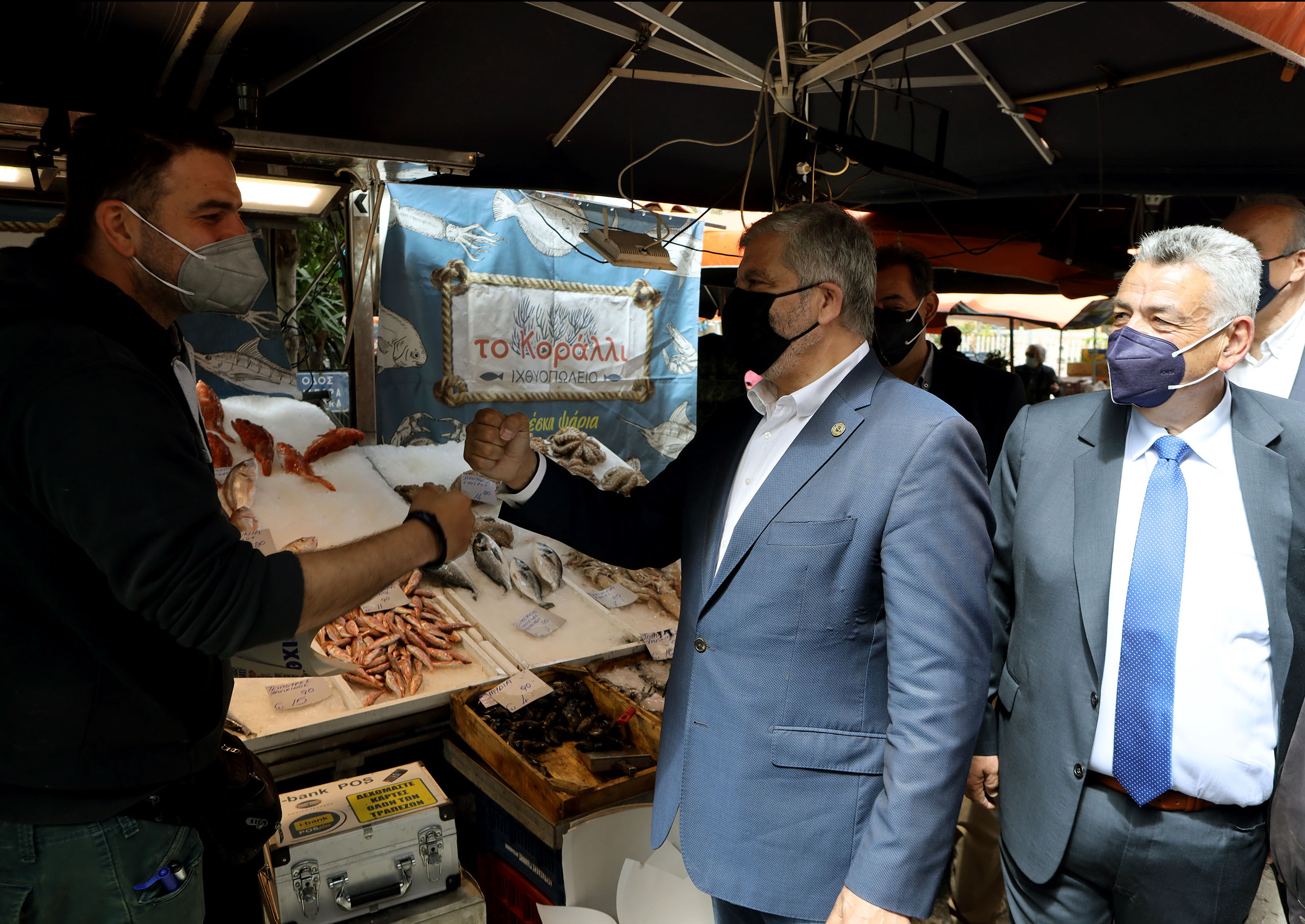 Κατά την παρουσία του στη Λαϊκή Αγορά του Παλαιού Φαλήρου ο Περιφερειάρχης είχε την ευκαιρία να συνομιλήσει με πολίτες και παραγωγούς για το πως κυμαίνεται η κίνηση ενόψει και της εορταστικής περιόδου αλλά και να υπογραμμίσει τη σημασία αυστηρής τήρησης όλων των υγειονομικών πρωτοκόλλων, για την προστασία των καταναλωτών, των εμπόρων, αλλά και την εύρυθμη λειτουργία της αγοράς. Στο πλαίσιο της επίσκεψης του μετέβη και στο Κοινωνικό Παντοπωλείο του Δήμου, απ΄όπου σύμφωνα με την ενημέρωση που είχε από τον Δήμαρχο Γ. Φωστηρόπουλο εξυπηρετούνται πάνω από 1.000 πολίτες που ανήκουν σε ευπαθείς κοινωνικές ομάδες.