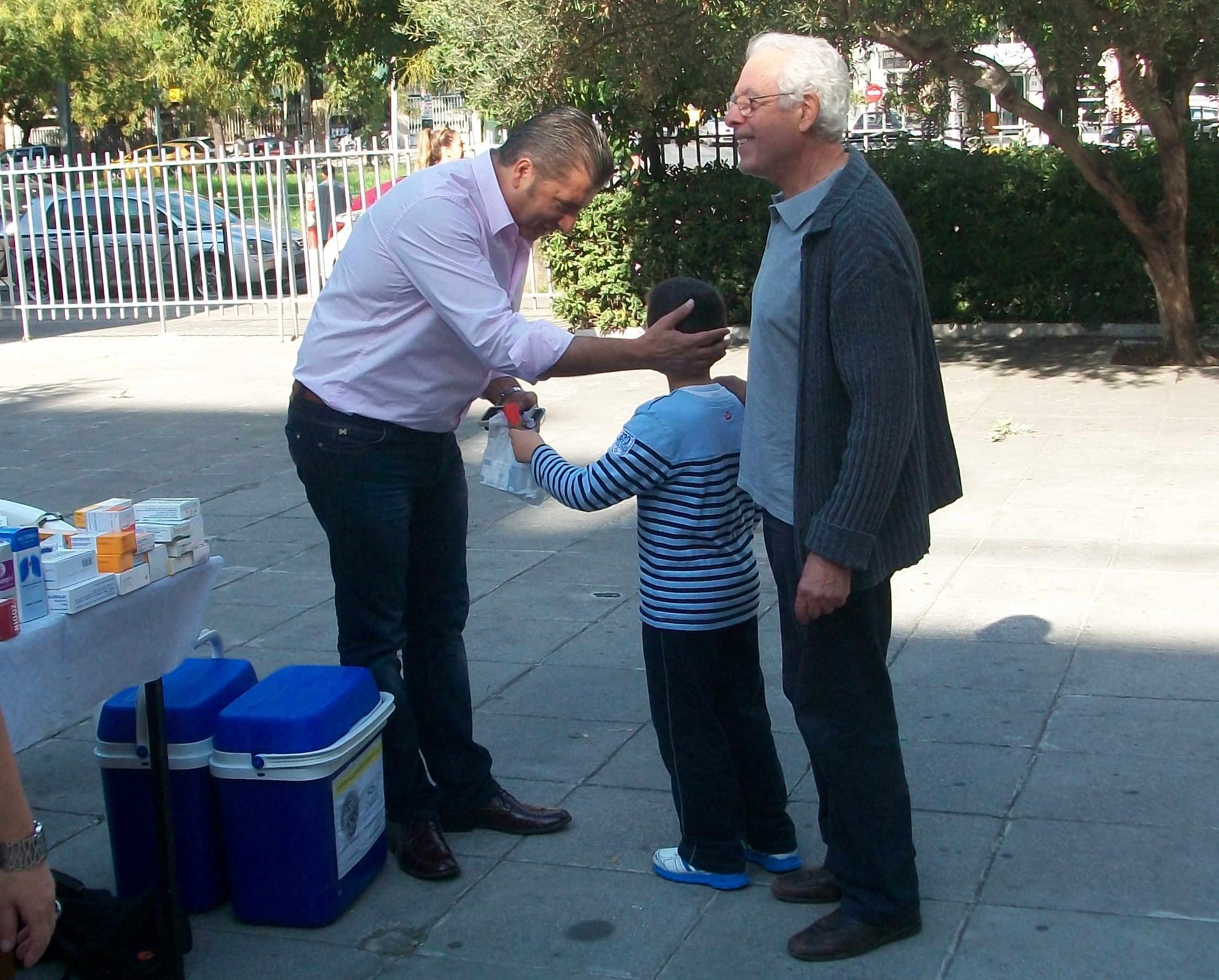 Ο Πρόεδρος του ΙΣΑ κος Πατούλης με το μικρό Γιωργάκη που πρσφέρει φάρμακα για τους ανασφαλιστους πολίτες