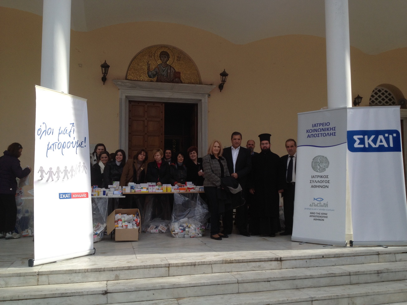 Η δράση που ξεκίνησαν μαζί το Ιατρείο Κοινωνικής Αποστολής και ο ΣΚΑΙ για την φαρμακευτική περίθαλψη των ανασφάλιστων πολιτών ξεπέρασε σε νούμερα κάθε προσδοκία. 300.000 φάρμακα είναι ο μεχρι τώρα απολογισμός που θα στηρίξει την καινούρια πρωτοβουλία του Ιατρείου Κοινωνικής Αποστολής, την Κοινωνική Τράπεζα Φαρμάκου του Ιατρείου Κοινωνικής Αποστολής.