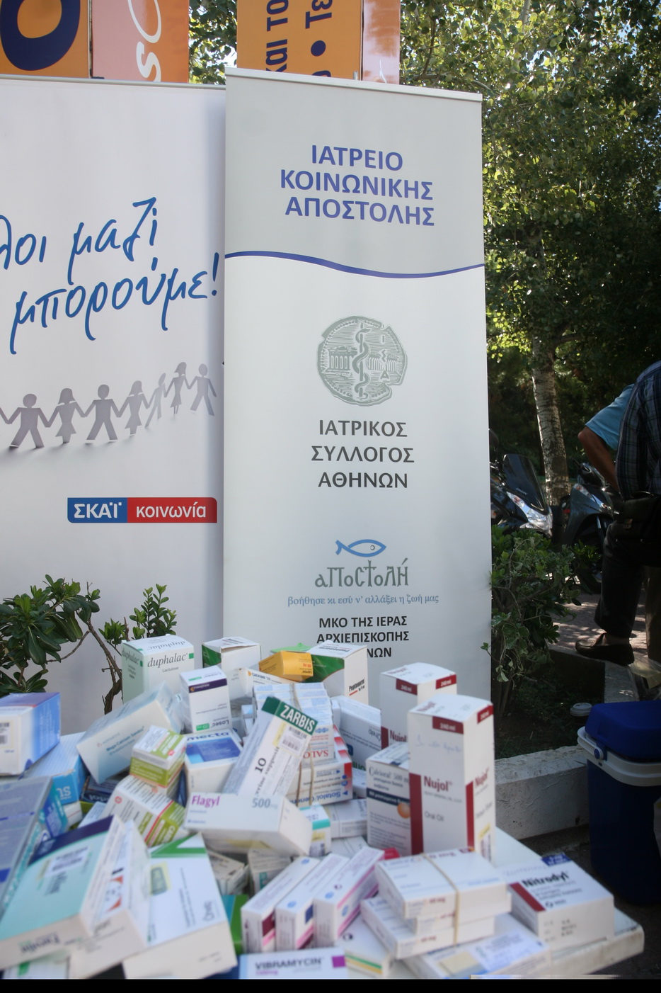 Μεγάλη και συγκινητική η ανταπόκριση του κόσμου που συνεχίζει, όχι μόνο εντός αλλά και εκτός Αττικής, για τη συγκέντρωση φαρμάκων που προορίζονται για ανασφάλιστους πολίτες. Και σήμερα με τη Ζάκυνθο, τα Γιάννενα, τη Σπάρτη και το Χολαργό, το μήνυμα αλληλεγγύης και ανθρωπιάς του Ιατρείου Κοινωνικής Αποστολής και του ΣΚΑΙ επεκτείνεται σε όλη την Ελλάδα.