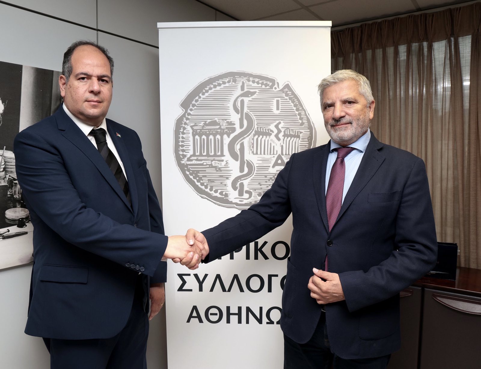 Με τον Πρέσβη της Παλαιστίνης στην Αθήνα κ. Γιόυσεφ Ντόρκχομ συναντήθηκε στα γραφεία του ΙΣΑ ο Πρόεδρος του Συλλόγου και Περιφερειάρχης Αττικής Γιώργος Πατούλης, παρουσία του Αντιπροέδρου του ΙΣΑ Φώτη Πατσουράκου και του Συμβούλου Α’ της Πρεσβείας της Παλαιστίνης Ομάρ Φανούς. Για το βίντεο της συνάντησης πατήστε εδώ Κατά τη διάρκεια της συνάντησης, ο κ. Ντόρκχομ απηύθυνε προς τον κ. Πατούλη αίτημα, για τη συνδρομή του Ιατρικού Συλλόγου Αθηνών, στη συγκέντρωση και αποστολή υγειονομικού υλικού στη Λωρίδα της Γάζας, καθώς, όπως τόνισε, μετά τον αποκλεισμό της περιοχής λόγω των πολεμικών επιχειρήσεων, υπάρχει παντελής έλλειψη ακόμα και σε βασικά φάρμακα και αναλώσιμα ιατρικά είδη. Ο Πρέσβης της Παλαιστίνης αναφέρθηκε επίσης στο ενδεχόμενο οργάνωσης ομάδας εθελοντών γιατρών και νοσοκόμων που θα μπορούσαν να μεταβούν στην περιοχή για να παράσχουν βοήθεια, ενώ ζήτησε τη διαμεσολάβηση του Συλλόγου προκειμένου να δοθεί η δυνατότητα μετακομιδής τραυματισμένων Παλαιστινίων για θεραπεία σε ελληνικά νοσοκομεία. Την ισχυρή βούληση του ΙΣΑ να συνδράμει με κάθε δυνατό τρόπο τον δοκιμαζόμενο παλαιστινιακό λαό, εξέφρασε ο κ. Πατούλης τονίζοντας ότι θα αναλάβει άμεσα πρωτοβουλίες προκειμένου να συγκεντρωθούν τα αιτούμενα υλικά, αρχής γενομένης από τα αποθέματα του Κοινωνικού Φαρμακείου του Συλλόγου, τα οποία είναι άμεσα διαθέσιμα. Σχετικά με το ζήτημα της αποστολής εθελοντών στην περιοχή, ο κ. Πατούλης προέκρινε το θέμα της ασφαλούς μετάβασης και παραμονής τους, προτείνοντας να οριστεί μια συγκεκριμένη διαδικασία σε αυτή την κατεύθυνση, ώστε να μπορούν να εργαστούν με ασφάλεια σε νοσοκομεία που θα στηθούν για την περίθαλψη τραυματιών εκτός των πεδίων σύγκρουσης. Επίσης, ο κ. Πατούλης δεσμεύτηκε ότι ο ΙΣΑ θα προβεί στις απαραίτητες συνεννοήσεις με το Υπουργείο Υγείας και με όλους τους αρμόδιους φορείς, προκειμένου να εξετασθεί το ενδεχόμενο μεταφοράς τραυματιών από τη Γάζα σε ελληνικά νοσοκομεία. «Με τον Παλαιστινιακό λαό μας ενώνει μια παραδοσιακή, βαθιά και ειλικρινής φιλία» δήλωσε ο κ. Πατούλης με αφορμή τη συνάντησή του με τον Πρέσβη της Παλαιστίνης. «Στην εφιαλτική κατάσταση που έχει δημιουργηθεί μετά την ανάφλεξη των πολεμικών συγκρούσεων στην πολύπαθη περιοχή, ο Ιατρικός Σύλλογος Αθηνών θα πράξει ότι είναι δυνατόν για την ανακούφιση των φίλων Παλαιστινίων» τόνισε ο κ. Πατούλης και πρόσθεσε: «ευχή όλων μας είναι να σταματήσει όσο το δυνατόν νωρίτερα αυτός ο ανθρωποκτόνος παραλογισμός, που έχει στοιχίσει τη ζωή σε χιλιάδες αμάχους, κυρίως παιδιά και γυναίκες. Διαβεβαίωσα τον κ. Ντόρκχομ ότι ως γιατροί, ως Έλληνες και πάνω απ’ όλα ως άνθρωποι, είμαστε στη διάθεση του για να βοηθήσουμε όσο και με όποιον τρόπο μπορούμε»