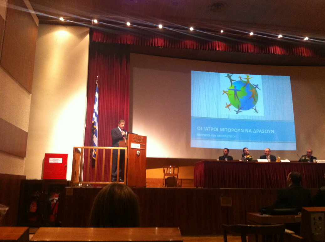 “Σε ένα Εθνικό Σύστημα Υγείας που καταρρέει, καθώς οι συνεχόμενες περικοπές στην φαρμακευτική και την ιατρονοσηλευτική περίθαλψη του ασθενή λαμβάνουν πια ακρωτηριαστικό χαρακτήρα, οφείλουμε όλοι μαζί οι λειτουργοί Υγείας να πάρουμε θέση. Στη σημερινή αυτή κρίσιμη καμπή της μετακύλισης της οικονομικής κρίσης σε ανθρωπιστική την οποία διάγουμε”, τόνισε ο κος Πατούλης, “όλο και περισσότεροι είναι οι ασθενείς αναγκαστικά θα παραμείνουν στο σπίτι… άρρωστοι και μόνοι…. Όλοι μαζί, οφείλουμε να σταθούμε όρθιοι και στα στηρίξουμε τους ασθενείς μας, για να τους διασφαλίσουμε το πολύτιμο αγαθό της Υγείας και της Ποιοτικής παροχής υγειονομικών υπηρεσιών με όποιο τρόπο μπορούμε, έτσι όπως μας επιβάλλει ο Όρκος μας.”