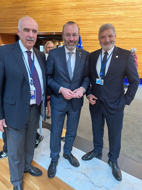 Παράλληλα, ο κ. Πατούλης συναντήθηκε με τον επικεφαλής Μάνφρεντ Βέμπερ και τον Αντιπρόεδρο Ε. Μεϊμαράκη της κοινοβουλευτικής ομάδας του Ευρωπαϊκού Λαϊκού Κόμματος. Στο επίκεντρο της συζήτησης βρέθηκαν όλες οι τρέχουσες εξελίξεις καθώς και τα σημαντικά  θέματα που απασχολούν αυτή την περίοδο τα κράτη-μέλη της Ευρωπαϊκής Ένωσης, με έμφαση τις συνέπειες του πολέμου στην Ουκρανία, την ενεργειακή κρίση αλλά και ζητήματα που σχετίζονται με την Υγεία, την κλιματική κρίση αλλά και την ασφάλεια των Ευρωπαίων πολιτών.