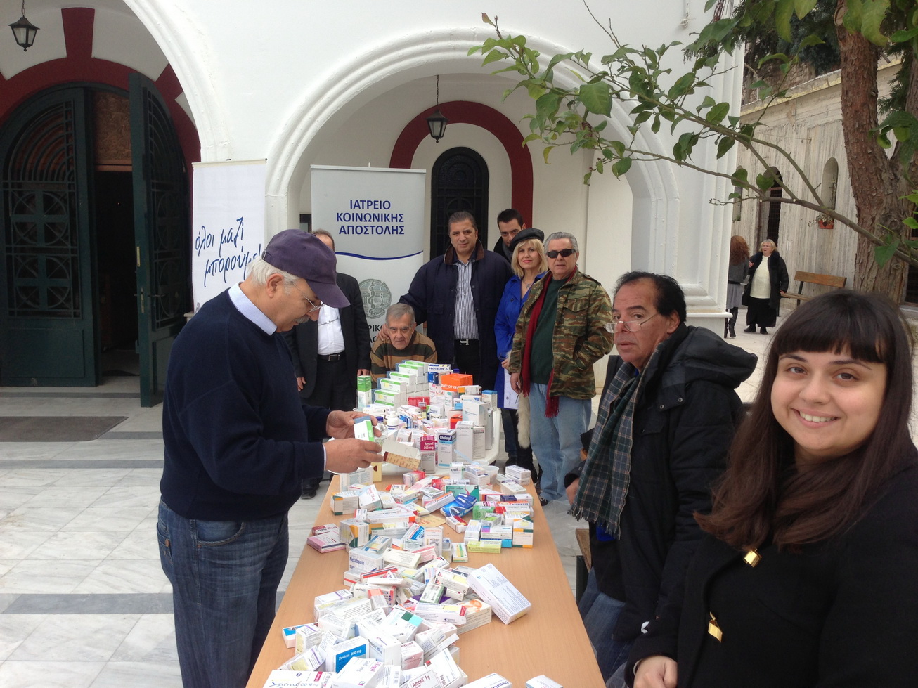 Στη συλλογή φαρμάκων παρευρέθησαν ο Προϊστάμενος του Ναού Πάτερ Νικόλαος, ο Πρόεδρος του Ιατρικού Συλλόγου Αθηνών κος Γ. Πατούλης, ο Γεν Διευθυντής της ΑΠΟΣΤΟΛΗΣ κος Κ. Δήμτσας, ο δημοσιογράφος του αυστριακού κρατικού καναλιού ORF κος Ράιτνερ, η δημοσιογράφος του ΣΚΑΙ κα Μπουσδούκου, και πολλοί εθελοντές του Ιατρείου Κοινωνικής Αποστολής, του Ιατρικού Συλλόγου Αθηνών, του φιλανθρωπικού οργανισμού ΑΠΟΣΤΟΛΗ και του συλλόγου γυναικών Παναθηναϊκή. Το Ιατρείο Κοινωνικής Αποστολής λειτουργεί Δευτέρα-Παρασκευή 9-2, στα γραφεία του Ιατρικού Συλλόγου Αθηνών, ως Μονάδα Πρωτοβάθμιας Φροντίδας Υγείας και Περίθαλψης για ανασφαλίστους πολίτες. Επίσης, το Κοινωνικό Φαρμακείο κάθε Τρίτη και Πέμπτη 9-1 λειτουργεί για τη χορήγηση φαρμάκων σε ανασφάλιστους πολίτες.