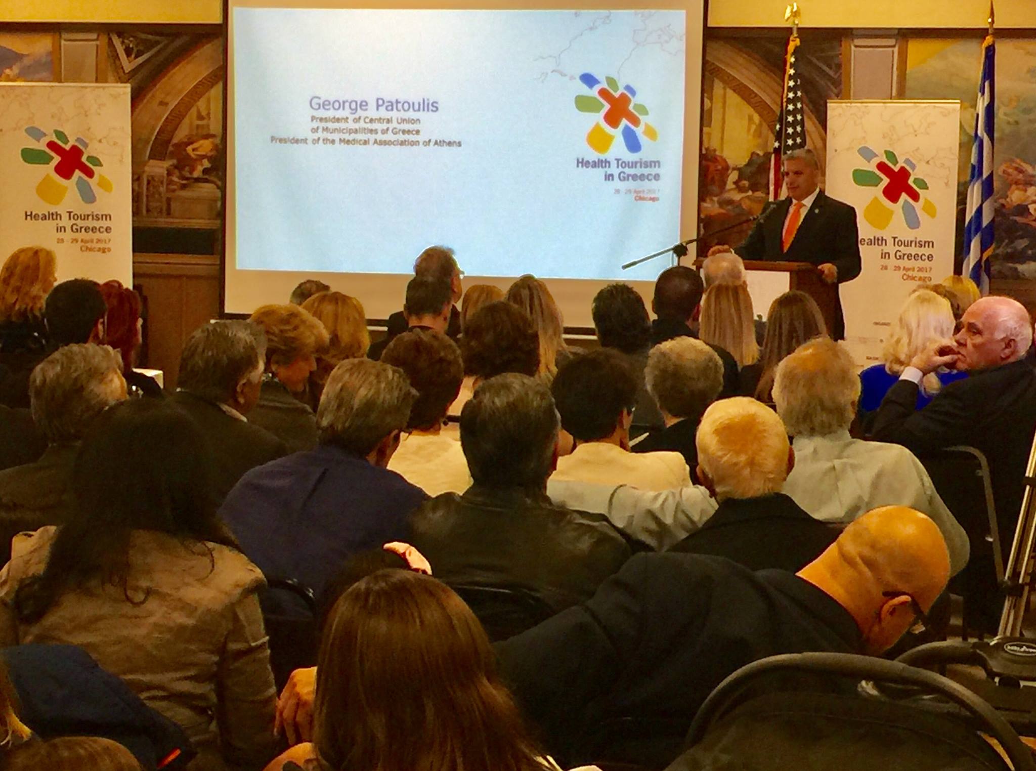 Η ανάδειξη της Ελλάδας σε κορυφαίο προορισμό, στον παγκόσμιο χάρτη του ιατρικού τουρισμού είναι ο στόχος σημαντικής διημερίδας που συνδιοργανώνουν στο Σικάγο των ΗΠΑ, ο Ιατρικός Σύλλογος Αθηνών, η Κεντρική Ένωση Δήμων Ελλάδας και ο τομέας Ιατρικού Τουρισμού του Ινστιτούτου Επιστημονικών Ερευνών του ΠΙΣ, σε συνεργασία με την Ομοσπονδία Ελληνικών Σωματείων Σικάγου, στις 28 και 29 Απριλίου 2017. Πρόκειται για τον τρίτο σταθμό , μετά την Νέα Υόρκη και το Μόντρεαλ, όπου πραγματοποιήθηκαν με μεγάλη επιτυχία ανάλογες εκδηλώσεις πριν από μερικούς μήνες. Οι πρωτοβουλίες αυτές εντάσσονται στο πλαίσιο του Εθνικού Στρατηγικού Σχεδίου, για την προώθηση του τουρισμού υγείας της χώρας μας που περιλαμβάνει σειρά δράσεων σε παγκόσμιο επίπεδο ,με στόχο να αναδειχθούν τα ανταγωνιστικά πλεονεκτήματα της Ελλάδας σε αυτόν τον τομέα. Παράλληλα οι δράσεις αυτές συμβάλλουν στην ανάπτυξη του Παγκόσμιου Ινστιτούτου Ελλήνων Ιατρών που συνενώσει τους απανταχού της γης Έλληνες ιατρούς. Στην διημερίδα συμμετείχαν επιφανή μέλη της επιστημονικής και επιχειρηματικής κοινότητας της Ελλάδας και των ΗΠΑ, εκπρόσωποι εταιριών που δραστηριοποιούνται στο χώρο του τουρισμού και της υγείας καθώς και ΜΜΕ από την Ελλάδα και το εξωτερικό. Την ελληνική κυβέρνηση εκπροσώπησε ο Υπουργός Ναυτιλίας και Νησιωτικής Πολιτικής Παναγιώτης Κουρουμπλής. Σύμφωνα με τα στοιχεία που παρουσιάστηκαν από τους ομιλητές, ο τζίρος της παγκόσμιας αγοράς ιατρικού τουρισμού όπως έδειξαν νεότερες έρευνες, ξεπερνά σε ετήσια βάση τα 100 δισεκατομμύρια δολάρια ενώ πρόκειται να αυξηθεί κατά 25% έως το 2025. Οι ομιλητές επεσήμαναν ότι οι ιατρικές υπηρεσίες στις ΗΠΑ είναι εξαιρετικά ακριβές ,γεγονός που καθιστά τη χώρα μας ιδιαίτερα ανταγωνιστική. Ανέφεραν ως χαρακτηριστικό παράδειγμα τις καρδιοχειρουργικές επεμβάσεις , για τις οποίες ο ασθενής πρέπει να πληρώσει συμμετοχή από 50.000 έως 90.000 δολάρια. Επίσης το κόστος μιας κολονοσκόπησης ξεπερνά τα 15.000 δολάρια και το κόστος μια αξονικής τομογραφίας τα 4.500 δολάρια. Σύμφωνα με εκτιμήσεις περισσότεροι από 1,25 εκατομμύρια Αμερικανοί πολίτες αναζητούν ιατρικές υπηρεσίες στο εξωτερικό .Μάλιστα παρουσιάστηκε το μοντέλο της Κόστα Ρίκα ,η οποία αποτελεί παγκόσμιο πρότυπο στον ιατρικό τουρισμό αφού προσελκύει κάθε χρόνο 40.000 ασθενείς από τις ΗΠΑ και τον Καναδά με ετήσιο τζίρο 350 εκατομμύρια δολάρια. Ο Υπουργός Ναυτιλίας και Νησιωτικής Πολιτικής Παναγιώτης Κουρουμπλής χαρακτήρισε τον ιατρικό τουρισμό έναν νέο σημαντικό δρόμο, για την Ελλάδα ενώ εξήρε την πρωτοβουλία του πρόεδρου του ΙΣΑ Γ. Πατούλη, για την ανάπτυξη του Παγκόσμιου Ινστιτούτου Ελλήνων Γιατρών . «Οι επιστήμονες της διασποράς είναι ένας τεράστιος πλούτος για τη χώρα μας τον οποίον πρέπει να ενεργοποιήσουμε. Οι εκδηλώσεις αυτές είναι ιδιαίτερα σημαντικές γιατί σπέρνουν τον σπόρο για την ανάπτυξη του ιατρικού τουρισμού και τη συνένωση των δυνάμεων του ιατρικού κόσμου. Η Ελλάδα διαθέτει το καλύτερο φυσικό πλεονέκτημα, το φιλόξενο περιβάλλον και το υψηλό επιστημονικό δυναμικό για να πρωτοστατήσει», τόνισε ο κος Κουρουμπλής. Ο Γ. Πατούλης, πρόεδρος του ΙΣΑ, της ΚΕΔΕ και του Τομέα Ιατρικού Τουρισμού του Ινστιτούτου Επιστημονικών Ερευνών του ΠΙΣ αναφέρθηκε στο Εθνικό Σχέδιο Δράσης, για την ανάπτυξη του Τουρισμού Υγείας στη χώρα μας. «Ο Τουρισμός Υγείας τοποθετείται μεταξύ των σημαντικότερων ανα