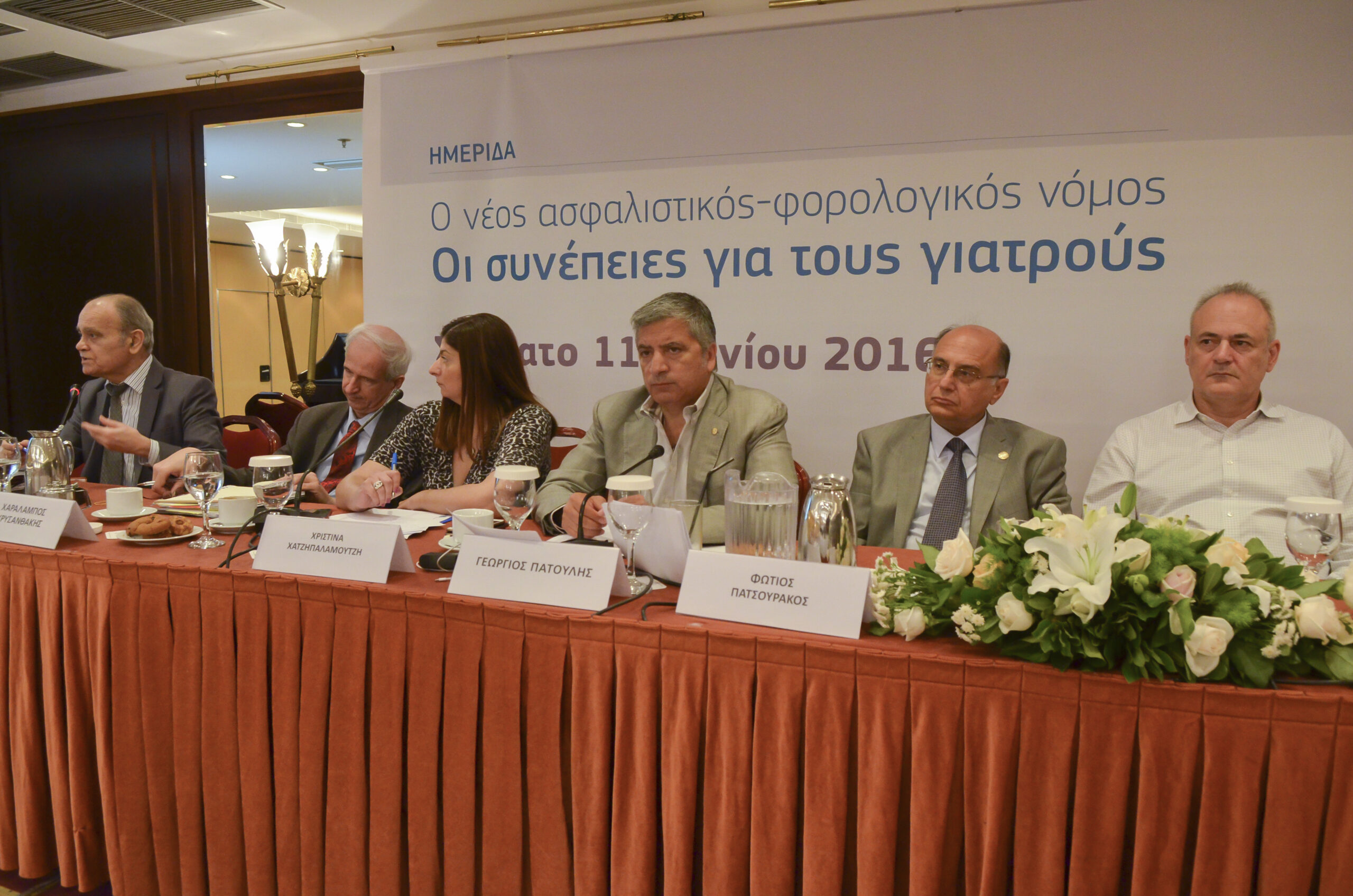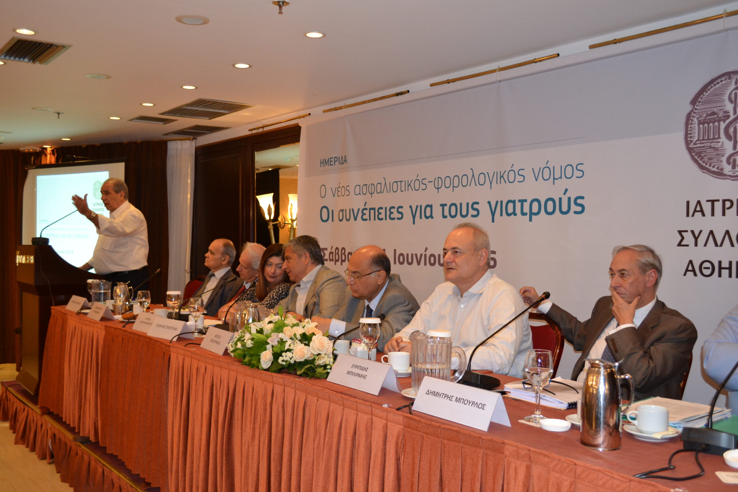 Θηλιά στο λαιμό των ασφαλισμένων, βάζει το νέο ασφαλιστικό και φορολογικό νομοσχέδιο, το οποίο εξοντώνει ελευθεροεπαγγελματίες και συνταξιούχους απειλεί την βιωσιμότητα των ασφαλιστικών ταμείων και υποθηκεύει το μέλλον των επόμενων γενεών. Το ενθαρρυντικό είναι ότι υπάρχουν σημαντικά ένδικα μέσα τα οποία να αξιοποιήσουν για να αμυνθούν οι Επαγγελματικές Ενώσεις και οι ασφαλισμένοι. Τα σημαντικά αυτά συμπεράσματα προέκυψαν μεταξύ άλλων, από την ημερίδα που διοργάνωσε ο ΙΣΑ , το Σάββατο 11 Ιουνίου, στο πλαίσιο της οποίας διακεκριμένοι ομιλητές παρουσίασαν στο κατάμεστο αμφιθέατρο, τις συνέπειες του ασφαλιστικού και φορολογικού νόμου. Ομιλητές ήταν ο κύριος Χαράλαμπος Χρυσανθάκης, καθηγητής Διοικητικού Δικαίου, ο κύριος Δημήτρης Μπούρλος Δικηγόρος –Εκδότης περιοδικού «Νομοθεσία ΙΚΑ» ο κύριος Γιώργος Ρωμανιάς οικονομολόγος τ. Δικηγόρος, πρώην Γ.Γ Κοινωνικών Ασφαλίσεων και ο κύριος Θεόδωρος Μπαρμπούρης, φοροτεχνικός Σύμβουλος ΙΣΑ. Τις εργασίες του συνεδρίου άνοιξε ο πρόεδρος του ΙΣΑ Γ. Πατούλης ,ο οποίος μεταξύ άλλων επεσήμανε τα εξής: «Ο Ιατρικός Σύλλογος Αθηνών πήρε την πρωτοβουλία να οργανώσει τη εκδήλωση για να υπάρξει ενημέρωση από τους πλέον ειδικούς , για την λαίλαπα των μέτρων που φέρνει το ασφαλιστικό και φορολογικό νομοσχέδιο, τα οποία απειλούν την βιωσιμότητα των ιατρείων και οδηγούν τον επιστημονικό κόσμο της χώρας στην επαγγελματική εξαθλίωση. Πρόκειται για ένα νέο ασφαλιστικό και φορολογικό σύστημα άδικο και κοινωνικά ανάλγητο που εισήχθη προς ψήφιση, με ιδιαίτερη σπουδή, χωρίς κανένα ουσιαστικό κοινωνικό διάλογο, επιβαρύνει όλους τους Έλληνες, ιδιαίτερα τους πιο αδύναμους και τη μεσαία τάξη κηρύττει τον πόλεμο στους νέους, και τους οδηγεί στην ξενιτειά μειώνει τις υφιστάμενες συντάξεις καταργώντας ακόμα και τον κλάδο των μονοσυνταξιούχων, ενώ ταυτόχρονα απειλεί την βιωσιμότητα των ασφαλιστικών ταμείων Πουθενά στην Ευρωπαϊκή Ένωση δεν υπάρχει ανάλογο σύστημα που να κατανέμει τόσο ανισοβαρώς τα βάρη, μεταφέροντας το πρόβλημα στις επόμενες γενεές». Από την πλευρά του ο κ. Χρυσανθάκης αναφέρθηκε στην ένδικη προστασία σε σχέση με τα ζητήματα που εγείρει ο νέος ασφαλιστικός νόμος και τόνισε ότι ο πολίτης δεν είναι ανυπεράσπιστος, υπάρχουν ένδικα μέσα, με τα οποία μπορεί να αμυνθεί «Υπάρχουν ουσιαστικά επιχειρήματα και ένδικα μέσα που αναγνωρίζει η έννομη τάξη και μπορούν να εξασφαλίσουν την πλήρη προστασία των δικαιωμάτων τόσο των εν ενεργεία ασφαλισμένων όσο και των συνταξιούχων σχετικά με τις περικοπές και την εξωπραγματική επιβολή των νέων εισφορών. Οι μεν επαγγελματικές Ενώσεις μπορούν να προσφύγουν στη δικαιοσύνη για τις κανονιστικές υπουργικές αποφάσεις ενώ για τις ατομικές πράξεις επιβολής εισφορών ή περικοπών των συντάξεων θα πρέπει να προσφύγουν οι θιγόμενοι», τόνισε ο κ.Χρυσανθάκης. Ο κ. Μπούρλος αναφέρθηκε στη σημαντική επιβάρυνση στις ασφαλιστικές εισφορές που προκύπτει από την πολλαπλότητα των υποχρεώσεων καθώς και από τη σύνδεση των εισφορών με το δηλούμενο εισόδημα .’’Πρόκειται για διπλασιασμό μέχρι και τετραπλασιασμό των εισφορών ενώ υπάρχει πλήρης αναντιστοιχία των ασφαλιστικών εισφορών, με τις μελλοντικές συντάξεις. Δηλαδή θα πληρώνουμε πολλά και θα πάρουμε λίγα», δήλωσε χαρακτηριστικά ο κ. Μπούρλος. Από την πλευρά του ο κ. Ρωμανιάς διευκρίνισε τα εξής: «Από τον Αύγουστο το