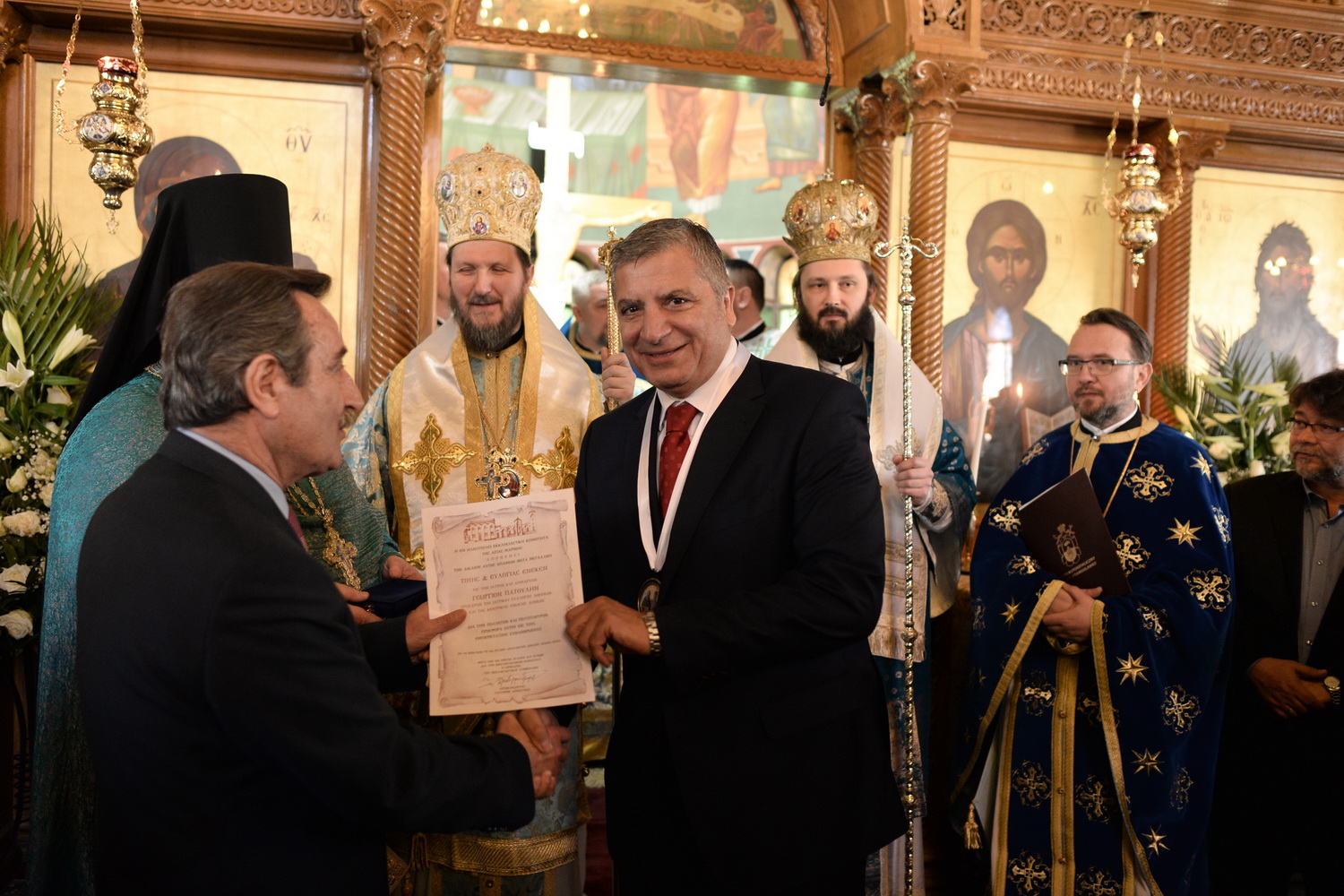 Για το σημαντικό κοινωνικό του έργο στον ΙΣΑ ,βραβεύτηκε ο Πρόεδρος του ΙΣΑ Γ. Πατούλης,από τον Επίσκοπο Σαλώνων Αντώνιο, μετά την πρωινή λειτουργία στην Αγία Μαρίνα Ηλιούπολης ,παρουσία του Επισκόπου Παύλου της Πολωνίας.