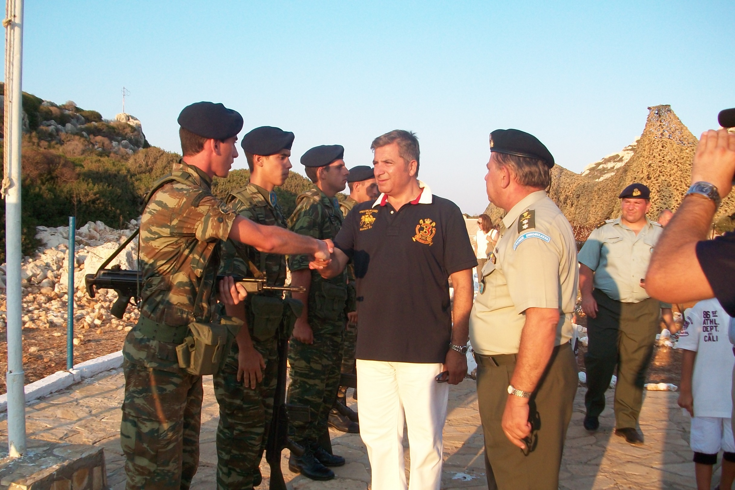 Ο κος Πατούλης με το Στρατηγό, δ/ντη 95 ΑΔΤΕ, κο Δεβετζή Νικόλαο και τους στρατιώτες της Νήσου Ρω