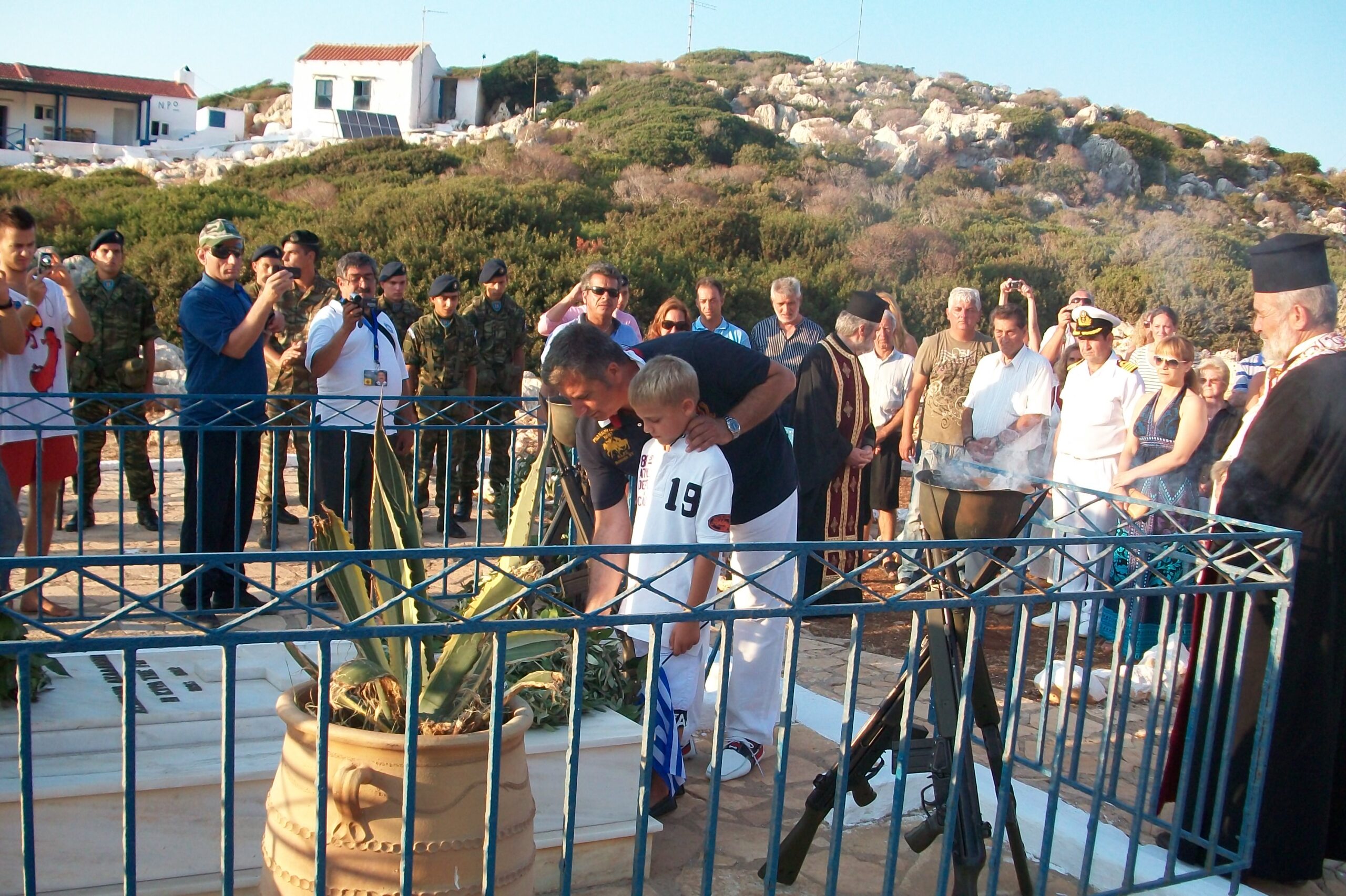 στη Νήσο Ρω, ο κος Πατούλης με το γιό του Αλέξανδρο. στην κατάθεση στεφάνου στον τάφο της Δέσποινας Αχλαδιώτη